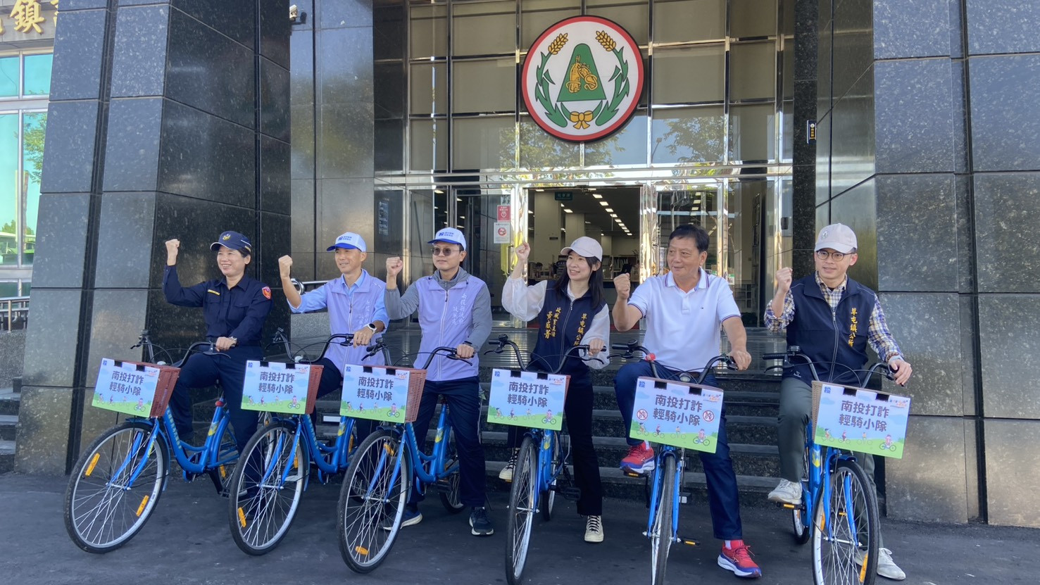 (特派員廖廣學 南投報導) 為提升民眾反詐騙意識,守護在地治安,草屯鎮公所政風室今(10)日上午與草屯分局共同辦理「清風騎行」反詐騙宣導專案,由南投縣政府政風處鍾副處長及草屯分局吳副分局長領軍,帶領公所同仁騎乘腳踏車,以行動走入街區、深入市井巷弄,呼籲民眾提高警覺、拒絕詐騙。宣導隊伍於上午10時自鎮公所大門整隊出發,由2輛警用機車前導開道,單車隊伍緊接其後,象徵公部門跨機關合作、聯合守護民眾財產安全的決心。隊伍沿草鞋墩一街、中山南街、中山街轉進和平街,再經太平路直行至中正路、和興街及碧山路,沿途使用擴音器宣導最新詐騙手法,提醒民眾務必提高警覺,遇到可疑訊息應「停看聽」並撥打 165 反詐騙專線查證,以免受騙。隊伍最終抵達本鎮公有市場廣場,透過現場宣講、舉牌宣導及與民眾合影分享,將反詐資訊深入社區每一個角落,營造全民識詐氛圍。