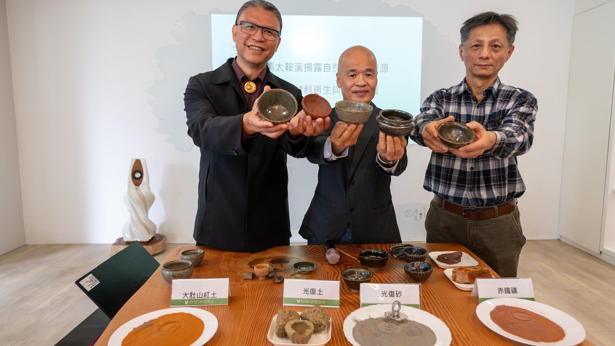 工藝中心主任陳殿禮表示,花蓮光復鄉馬太鞍溪砂質淤泥兼具獨特的地質背景與材料特性,展現出由土地孕育而生的工藝潛力。工藝中心已將相關研究成果納入「臺灣工藝材質平台」,並持續與地方政府及產業端合作,推動材料安定性評估與後續開發研究,期盼促成兼具在地特色、工藝價值與產業應用潛力的創新成果;同時,此項發現亦為光復鄉災後重建提供新的思考契機,透過將災害所產生的淤泥轉化為可再生、可應用的工藝資源,不僅實踐工藝中心所倡議的「漫活 SLOHAS」善藝精神,更呼應 H₂O 水哲學(Human Heart Over All)以人心為本、順應自然的核心價值,使工藝成為連結土地、社區與生活的溫柔力量,引領地方朝向「漫幸福.活自在」的永續生活樣貌穩步前行。