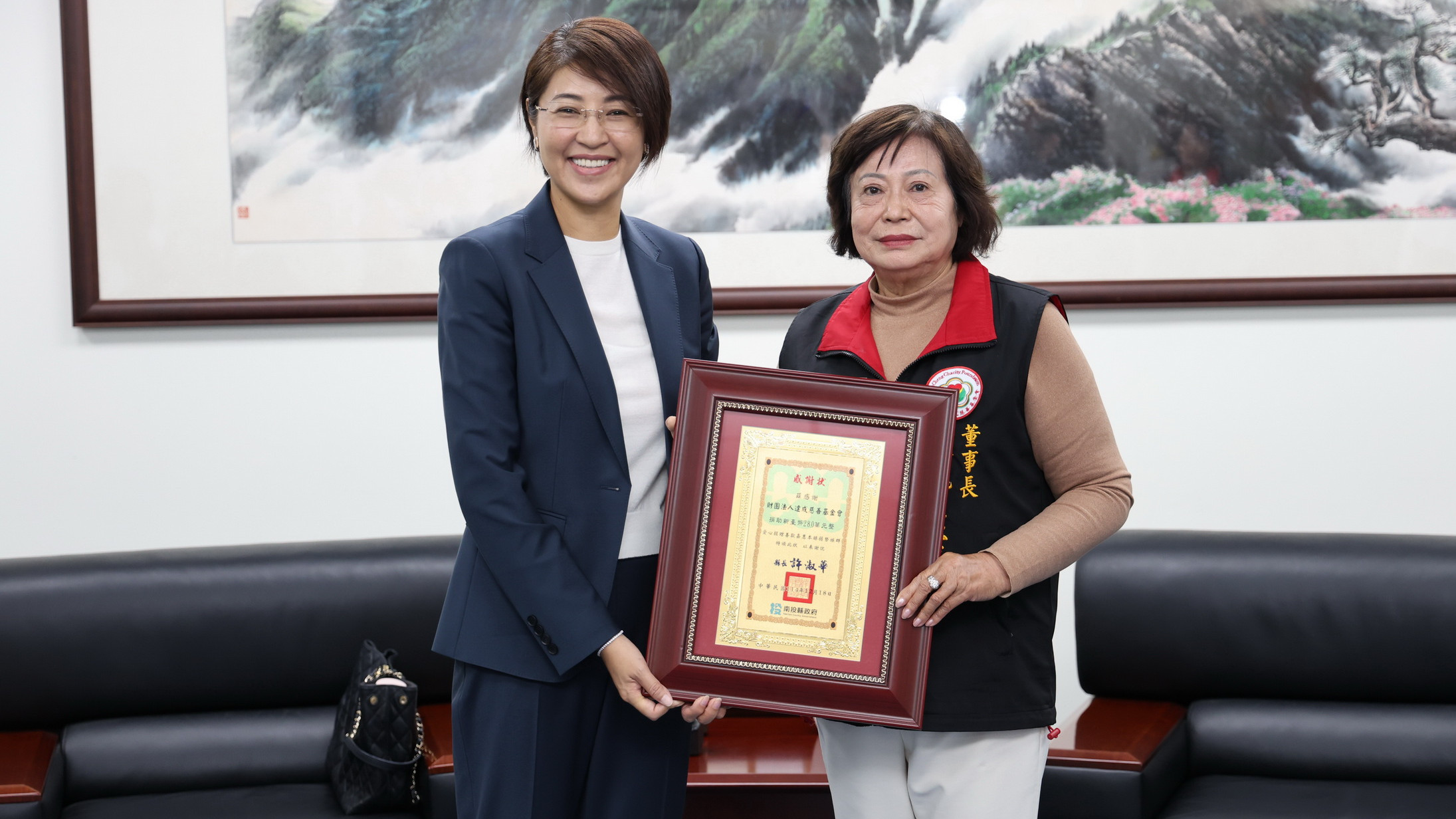 許縣長說,來自桃園的達成慈善基金會,是知名的慈善團體,每年募集善心人士的捐款約達3千萬元規模,用以照顧全國弱勢朋友;自106年迄今累計已捐助本縣1,320萬元,其中喪葬補助1,548戶,兒少儲蓄支持1,934名,顯見該會對縣府的信任及對南投縣的深厚關懷。