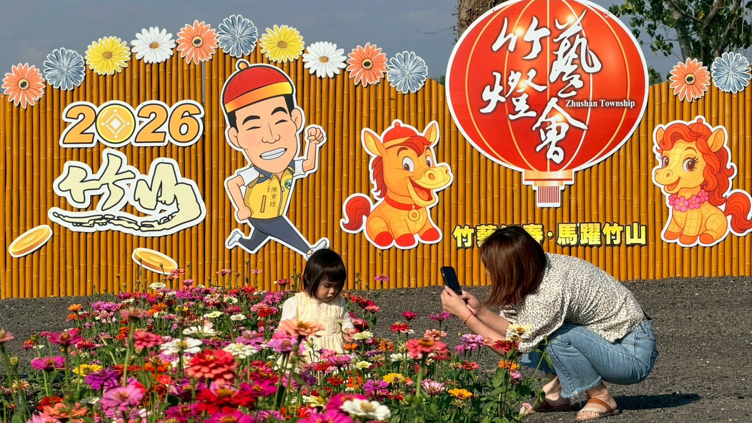 (特派員陳錦玲 南投報導)為迎接即將登場的2026竹山竹藝燈會,南投縣竹山鎮公所於前山路二段九十九崁地區精心規劃花海景觀,種植面積達4,000平方公尺的大波斯菊及百日草,近期已陸續盛開,繽紛花色隨風搖曳,為地方注入濃厚節慶氛圍。