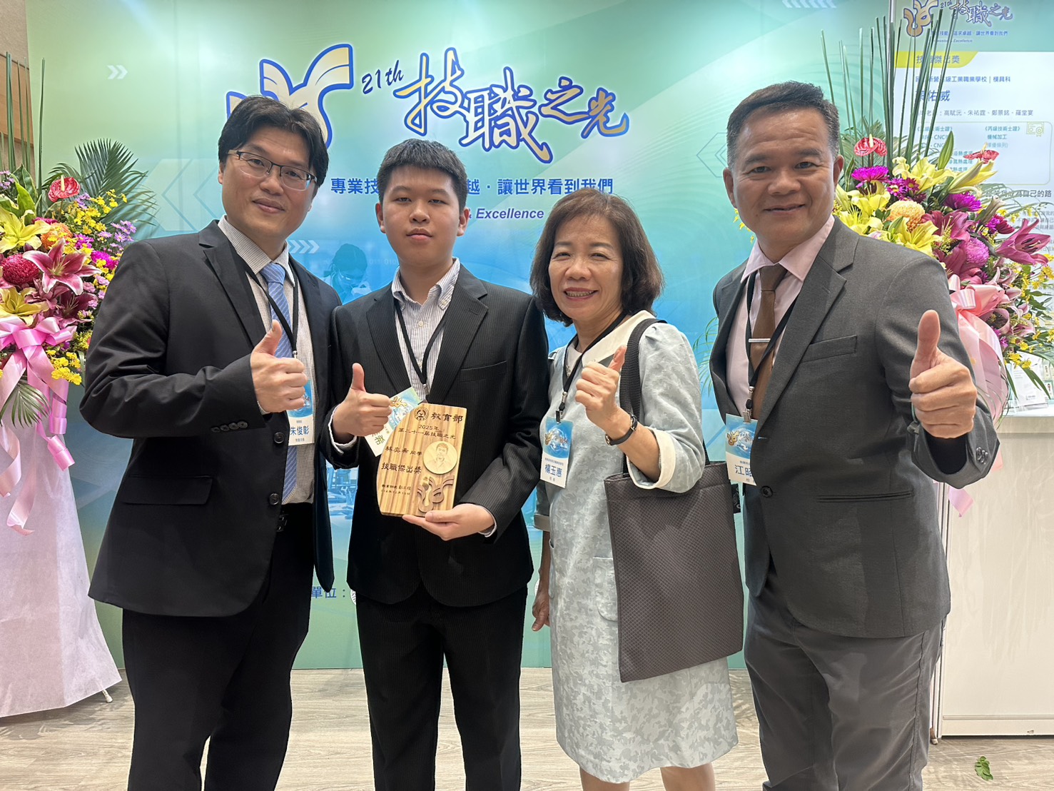 (特派員廖廣學 南投報導)教育部為鼓勵技職校院師生踴躍參與國際性技藝能競賽和專業證照檢定,特別為這些領域具有傑出表現的師生,設置技職校院最高榮譽-「技職之光」,並由教育部朱俊彰常務次長頒獎。今年「2025第21屆技職之光」頒獎典禮於12月19日假集思交通部會議中心舉行,南開科技大學自動化系林奕希同學,以機電整合、氣壓、CNC車床、CNC銑床、電腦硬體裝修、電腦輔助機械設計製圖、電腦輔助立體製圖、機械加工與電腦軟體應用等9個職類,5張乙級與8張丙級共13張勞動部證照,繼2018、2019、2020、2021、2022、2023與2024自動化系屠俊浩、童子郡、藍政顯、葉育麟、范嘉恩、林御笙與李晧平等7位學長獲獎後,連續8年為本校奪得「技職傑出獎--證照達人」。林奕希同學目前在旭東機械工業股份有限公司進行全學年準員工實習,他認為考取證照不只能肯定自我,亦能增加就業的實務能力,擁有各項跨領域專業證照,成為了自己接軌職場的最大優勢。