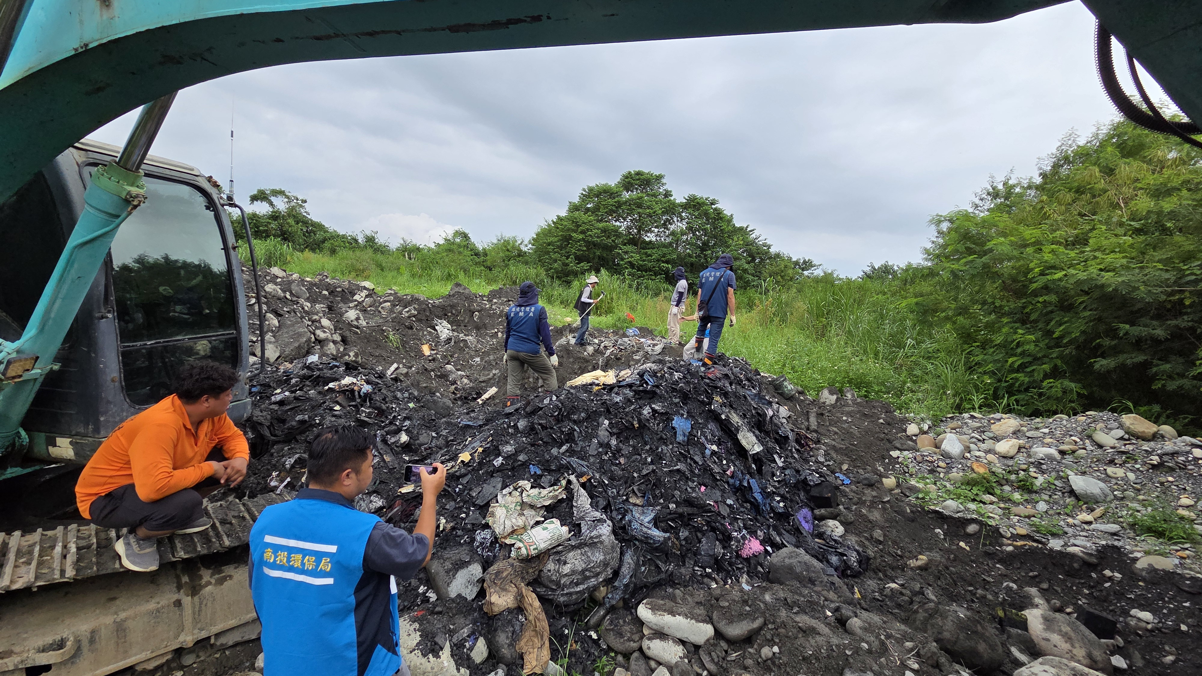 專案小組經長期蒐證,掌握蔡姓嫌疑人及其車隊成員至南投縣濁水溪河床處違法傾倒廢棄物,專案小組成員遂至案地現場查緝,執行第一波搜索,並於114年9月2日夜間及3日清晨當場緝獲蔡姓嫌疑人等3人,並向法院聲押獲准,隨後再溯源查緝共犯,發現尚有其他車隊成員以及幕後土尾集團涉案,遂分別對相關共犯執行四波搜索,執行13人到案,其中土尾集團主嫌陳嫌及部分車隊成員聲押獲准、其餘共犯則裁定交保等,全案共計查緝犯嫌20人、查扣拖車2臺、曳引車3臺(含2臺尾車)、挖土機1臺、無線電主機3台、手持無線電6台、手機16支及相關帳冊等,全案依廢棄物清理法、組織犯罪防制條例等罪嫌解送臺灣臺中地方檢察署偵辦。
