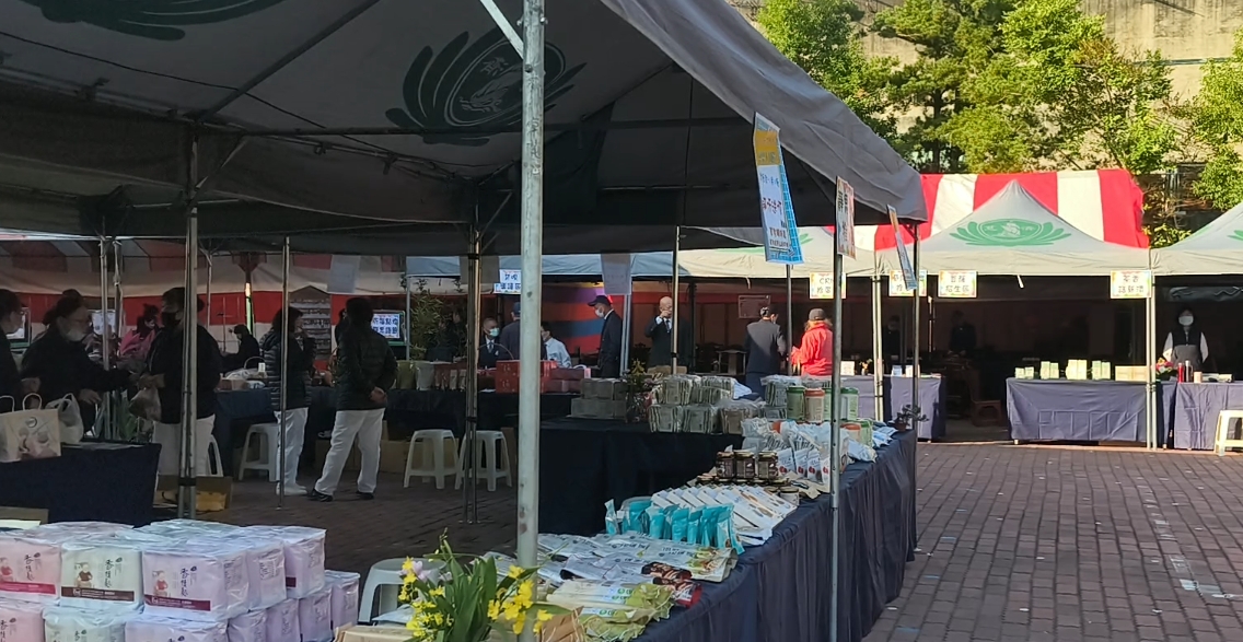 外場也設立有14個攤位,衛教宣導、防詐宣導、愛心福緣店攤位,外場如一場嘉年華會般、春聯揮毫區、竹筒回娘家、竹情茶香、惜福寳藏區、人間菩薩大招生、慈濟Line推廣區等,外場如一場嘉年華會般。