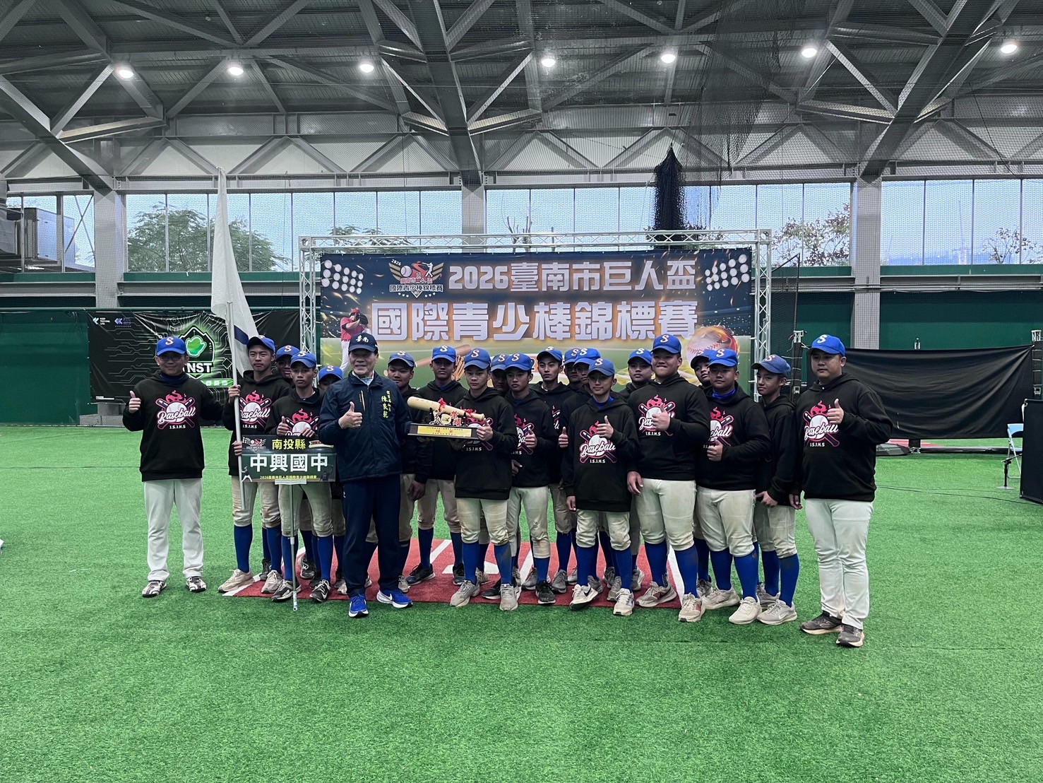 (特派員廖廣學 南投報導) 南投中興國中於2026 台南市巨人盃國際青少棒錦標賽於元旦期間在台南登場,並於 1 月 7 日圓滿落幕。南投縣中興國中在高強度、多國對抗的賽事中歷經層層考驗後成功奪冠,站上巨人盃最高榮耀,寫下隊史重要里程碑。