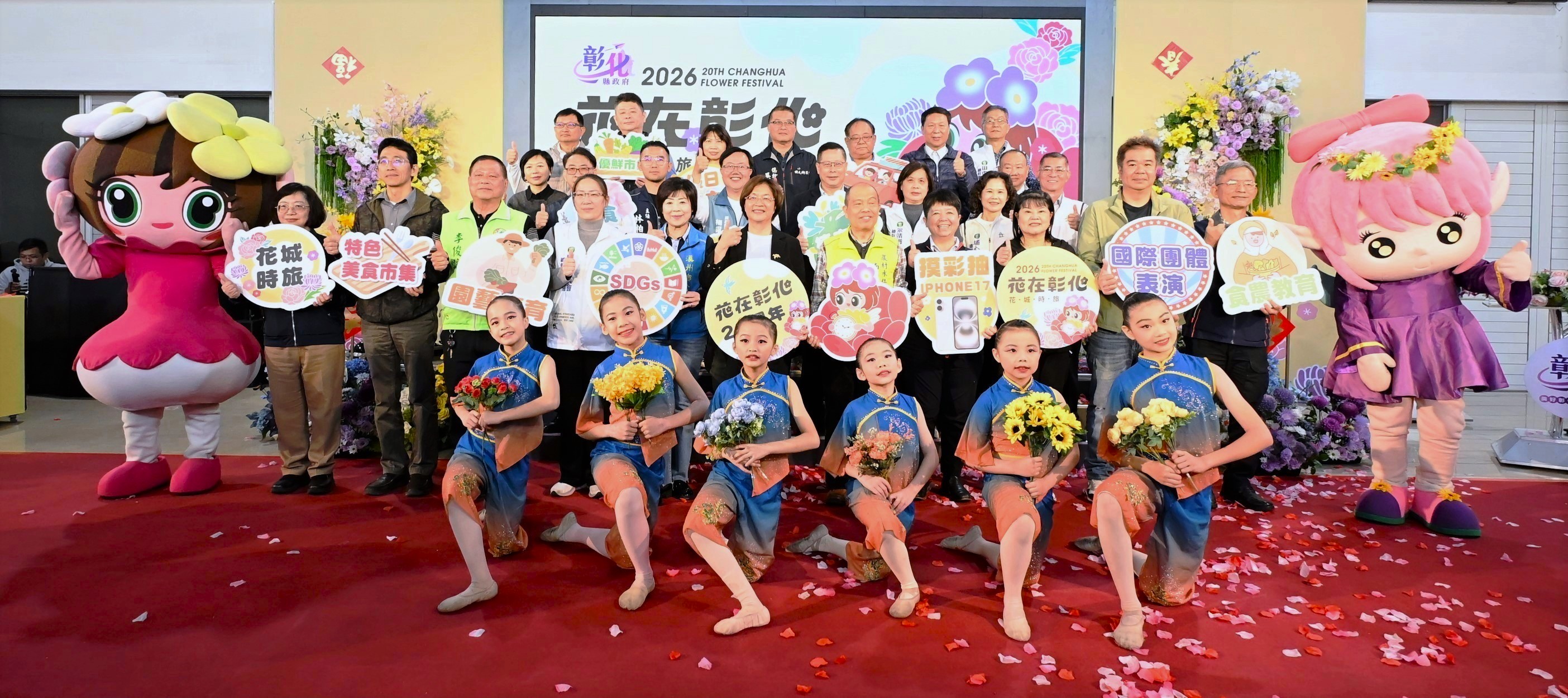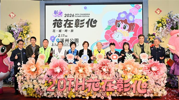 (記者邱暐茹 彰化報導)全台春節走春第一品牌「花在彰化」迎來20週年里程碑!彰化縣政府今(3)日於縣府中庭舉辦記者會,縣長王惠美宣布 2026「花在彰化」以「花城時旅」為主題,從大年初一(2月17日)至正月十三(3月1日)在溪州公園盛大登場。王縣長表示,今年花在彰化有三大亮點,一是繽紛的花卉饗宴,以「花城時旅」為活動主題,融合生活花藝、永續概念與沉浸式體驗;二是精彩的9大假日主題活動,從親子同樂到毛孩樂園、國際團隊演出及特色市集,推出「滿額送」及「兩倍券」促銷;三是「20週年主題互動體驗」,上傳精彩回憶,即時呈現電視牆、列印紀念照,還可抽 iPhone 17 與農特產好禮!邀請全國民眾「回娘家」,見證彰化花卉產業的轉型與美學。