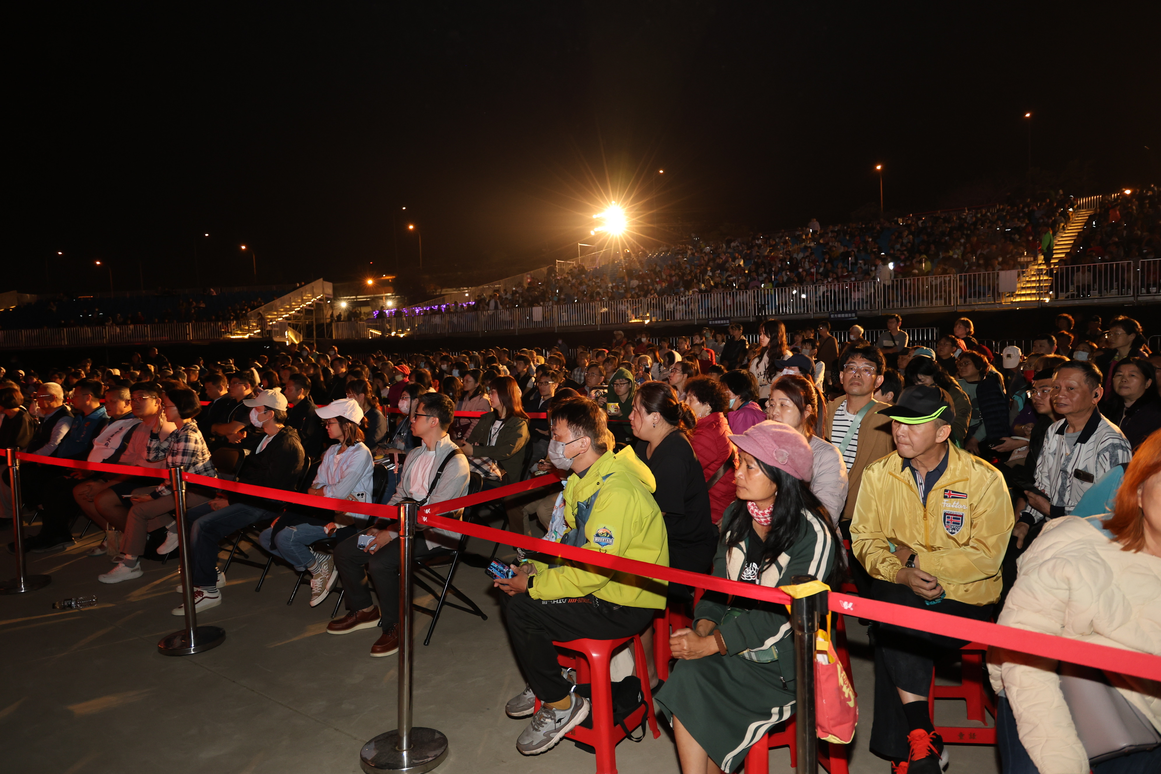 (特派員廖廣學 南投報導)2026南投燈會精彩連連,活動高潮迭起,眾所期待的新春特別節目「民歌年代風華夜」27日晚間在水舞廣場隆重登場,由金鐘獎得主-南投女兒侯怡君主持,實力派歌后—潘越雲與李翊君接力演唱經典民歌及動人金曲,吸引熱情民眾湧入觀賞,觀眾區座無虛席;縣長許淑華、副縣長王瑞德、南投市長張嘉哲及貴賓到場與民眾一同欣賞,氣氛熱絡。