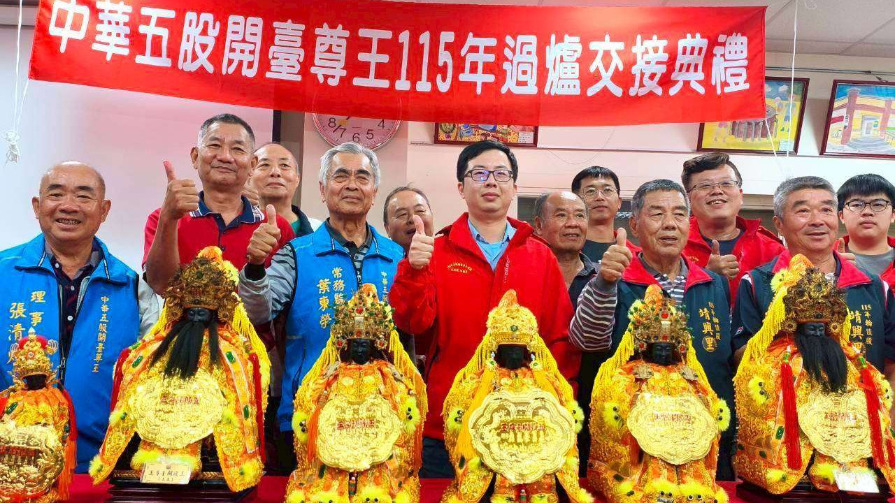 【特派員林昱宏雲林報導】每年元宵節後,雲林縣定民俗「五股開臺尊王過爐大典」即將登場,今年3月8日盛大起駕,6日率先舉辦過爐記者會暨點交儀式,五股十三庄各村里長與協會執事人員齊聚大埤鄉豐田村成功廟,完成祭器、文物及金牌的移交,象徵值年股正式承擔新一年奉祀責任。