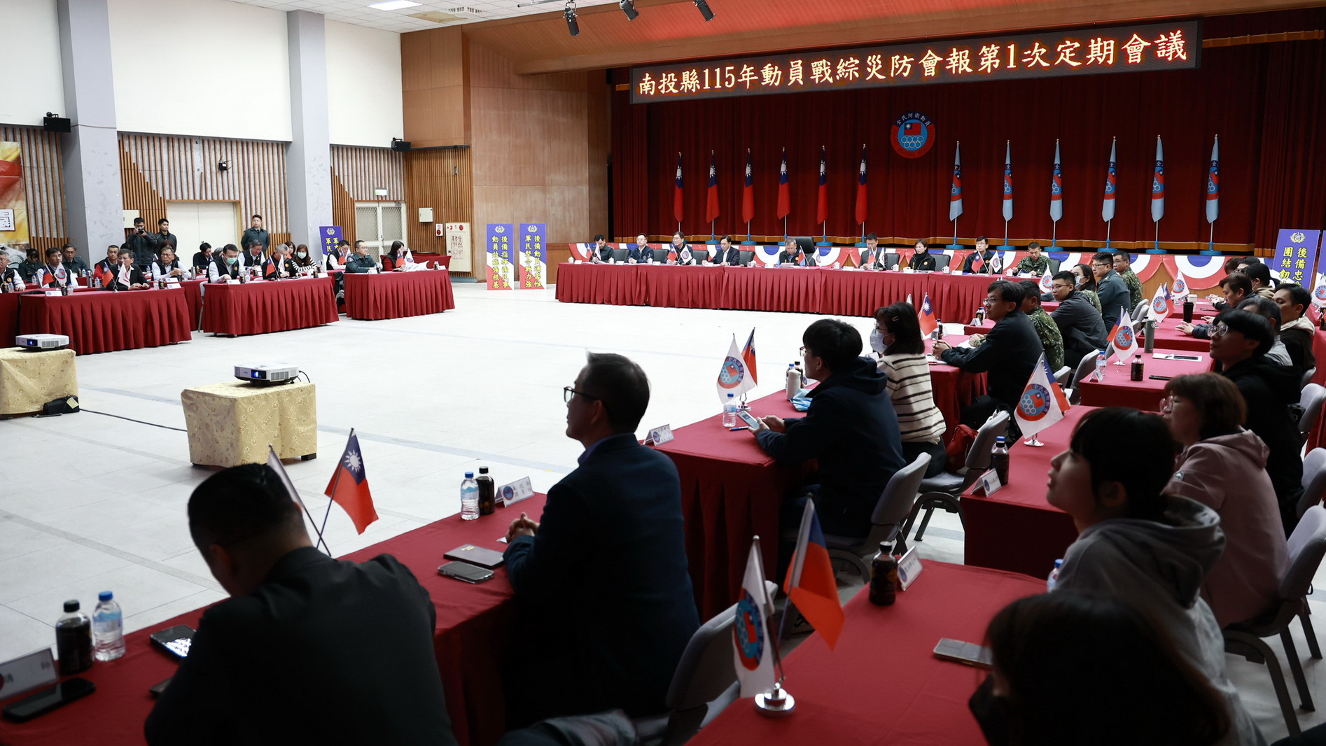 包括行政院動員會報吳國良處長、行政院災防辦公室李彥毅參議、臺閩戰綜會報孫福康上校、中部地區戰綜會報陶成濬少將、南投縣後備指揮部張隆銘指揮官、動員會報執行秘書林琦瑜處長、縣府各局處長,及縣內各公所、民營事業單位約100人與會,藉此整合軍民資源,互相支援各項戰演訓練及防救災任務。