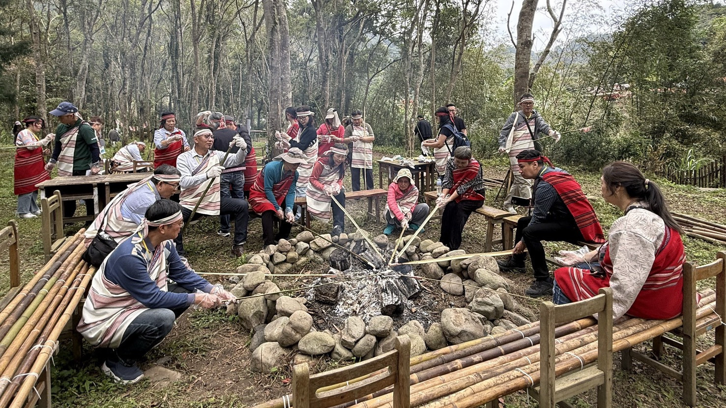 南庄擁有豐富的自然景觀、悠閒的農村產業風貌,並融合賽夏族與泰雅族文化的多元特色。活動首先由南江休閒農業區發展協會理事長陳黃光達和部落青年帶領學員換上原住民族傳統服飾,接著步行僅需1分鐘,即進入如自然山林般的南庄獵人學校場域,在森林芬多精環繞下,體驗野菜辨識、陷阱狩獵與箭術等原民傳統知識。透過沉浸式的山林體驗,讓參與者得以深入認識部落生活文化與原民風情,並感受當地所倡議的慢食、慢遊、慢活「國際慢城」生活節奏。