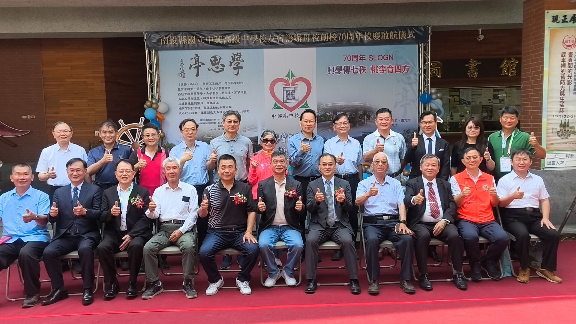 (特派員廖廣學 南投報導)國立中興高中11日舉辨建校69周年校慶及時光迴廊揭幕暨籌辦母校創校70周年校慶啟航儀式,由校長陳漢林主持,包括副縣長王瑞德、立委游顥、市長張嘉哲、各校長、校友會會長盧榕洲及來賓共同參與,慶祝69周年生日快樂。