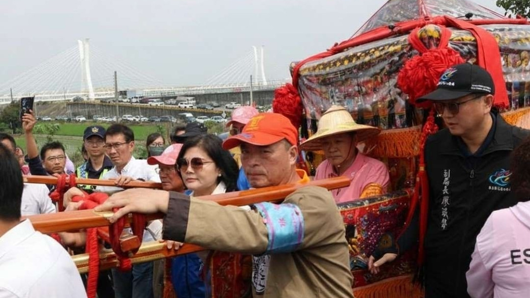 大甲媽進香張麗善掌轎送駕走過新崙子大橋