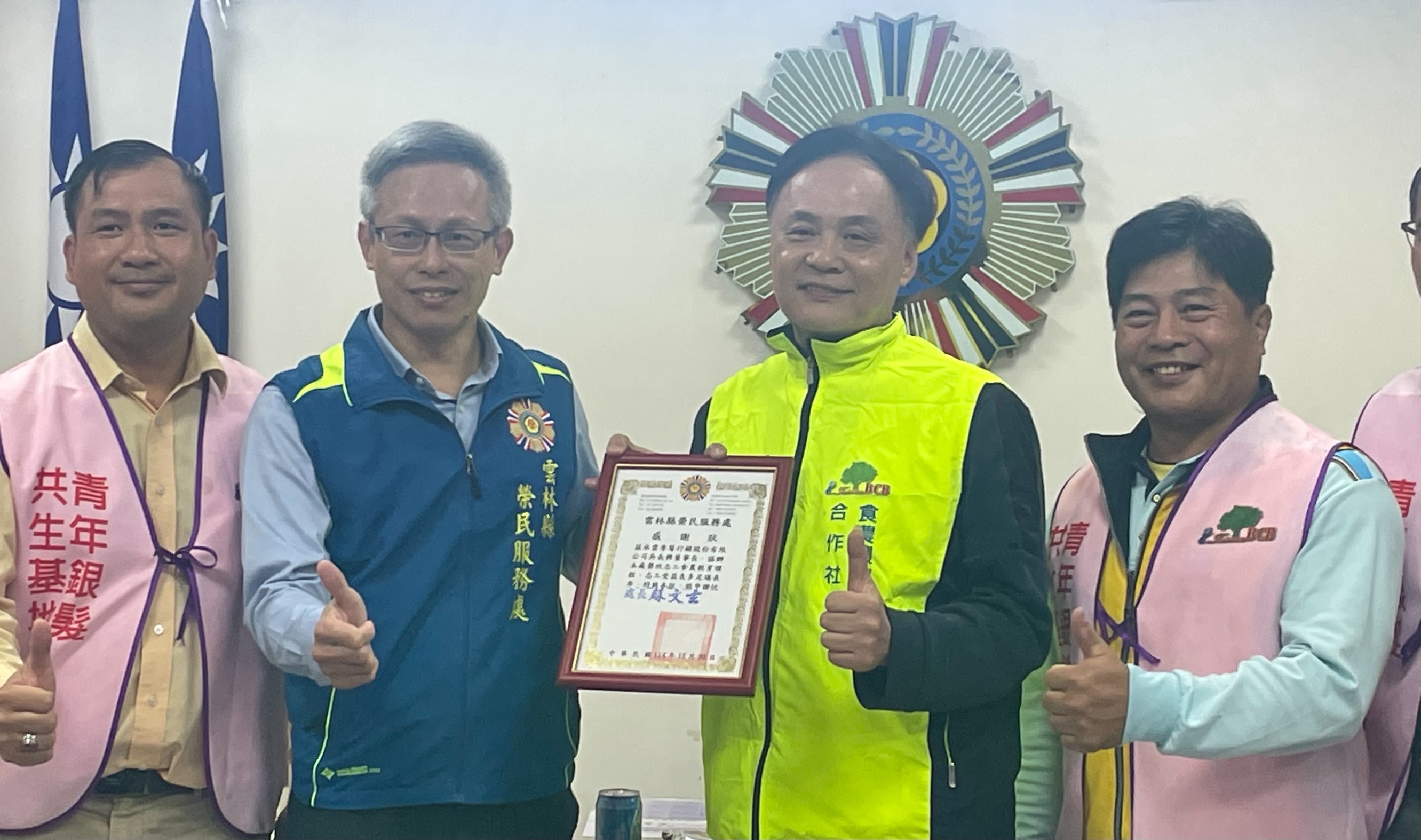 榮服處說,活動並轉頒衛福部銅牌獎予黃細桃志工,表彰其長期投入志願服務的卓越貢獻,另由隊長郭章仁代表志工隊,將輔導會頒發的「志工救災獎」與「表演獎」獻給雲林縣榮服處,肯定機關對志工服務的支持。