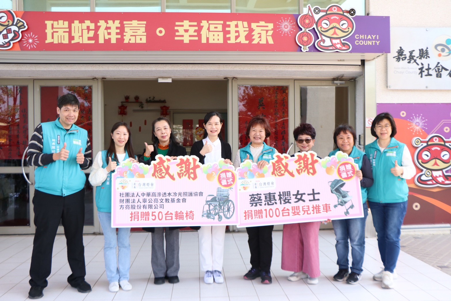 【特派員林昱宏嘉義縣報導】為讓2026台灣燈會提供更友善、無障礙的賞燈體驗,嘉義縣政府社會局5日舉辦「2026台灣燈會輪椅及嬰兒推車聯合捐贈儀式」,由社團法人中華高滲透水冷光照護協會媒合財團法人辜公亮文教基金會及方亮股份有限公司,捐贈50台輪椅;仁義湖岸大酒店董事長蔡惠櫻同時捐贈100台嬰兒推車,協助身障者、行動不便長者及育兒家庭安心賞燈。