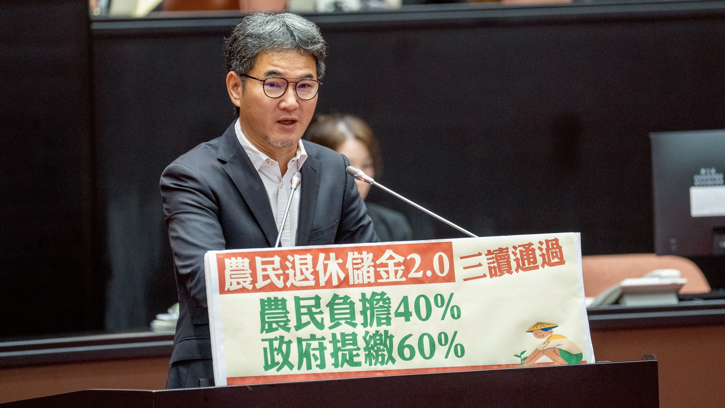 劉建國表示,感謝農業部及朝野委員支持,讓農民退休儲金2.0順利完成三讀,期盼老農津貼修法能儘速凝聚共識、接續完成立法,全面提升農民晚年生活保障。