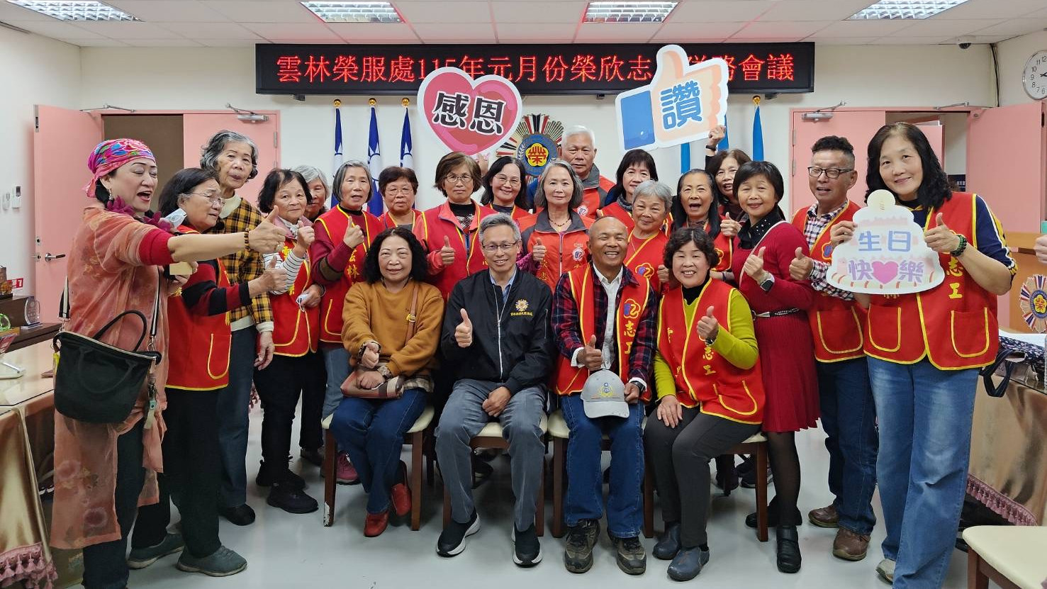 【特派員林昱宏雲林縣報導】為持續精進志工服務品質,深化對榮民及眷屬的關懷照顧,雲林縣榮民服務處日前召開榮欣志工隊隊務會議,由處長蘇文玄親自主持,除檢視志工服務成果、研議未來精進方向外,並特別安排志工慶生會,感謝志工夥伴長期投入,現場氣氛溫馨感人。