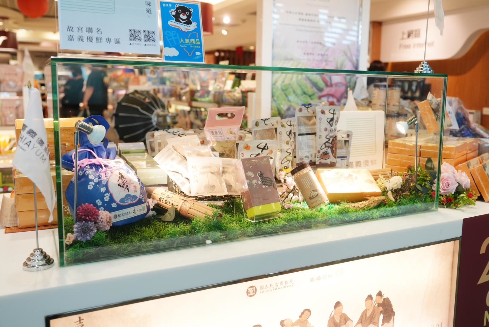 縣府指出,此次專區上架多款嘉義優鮮與故宮聯名商品,透過故宮典藏文物的設計轉譯,呈現嘉義各鄉鎮農產特色與加工創新,包括義竹玉米爆米花、梅山燒烤梅、竹崎椪柑軟糖、水上蓮藕粉、布袋虱目魚絲、虱目魚白蝦脆餅、太保黃金地瓜酥、烏魚子爆米花等,產品多元、風味鮮明。