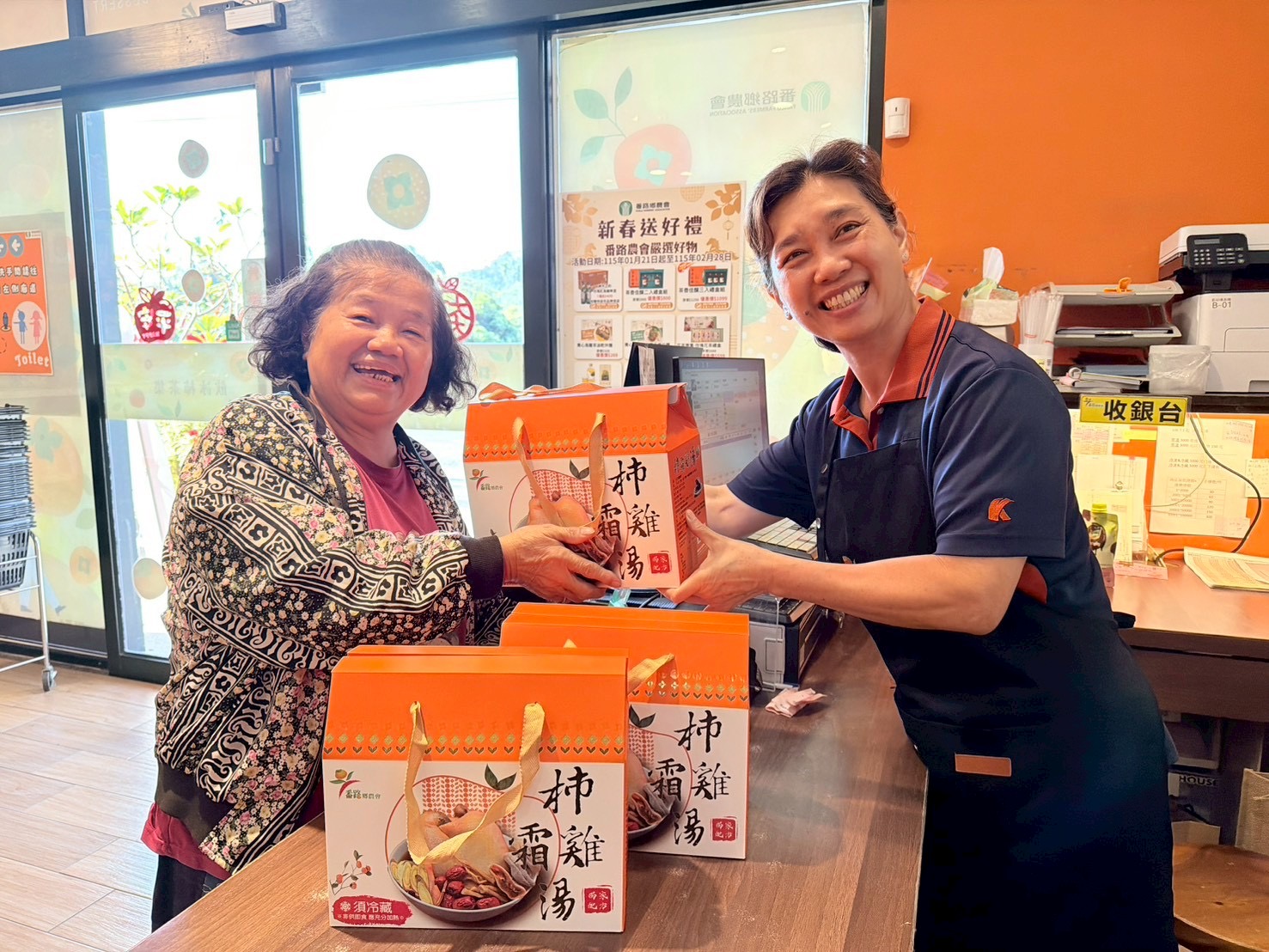 農會說,除了柿霜雞湯,番路農會其他柿葉系列產品、茶燒米菓與在地農產禮盒,也跟著熱銷,不少企業與政府單位選擇整組搭配訂購,作為員工及客戶的年節心意禮品,帶動農會整體業績明顯成長。