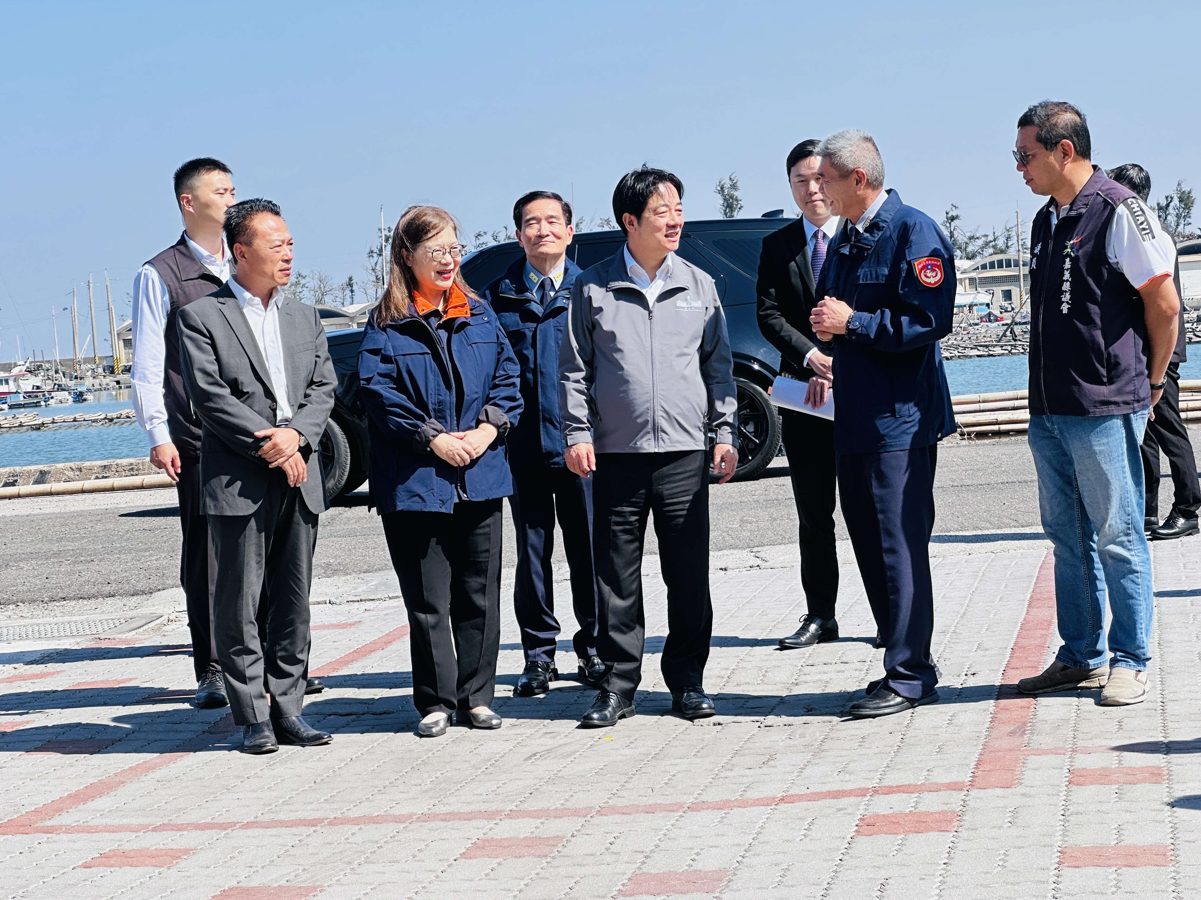 總統在布袋安檢所前合照