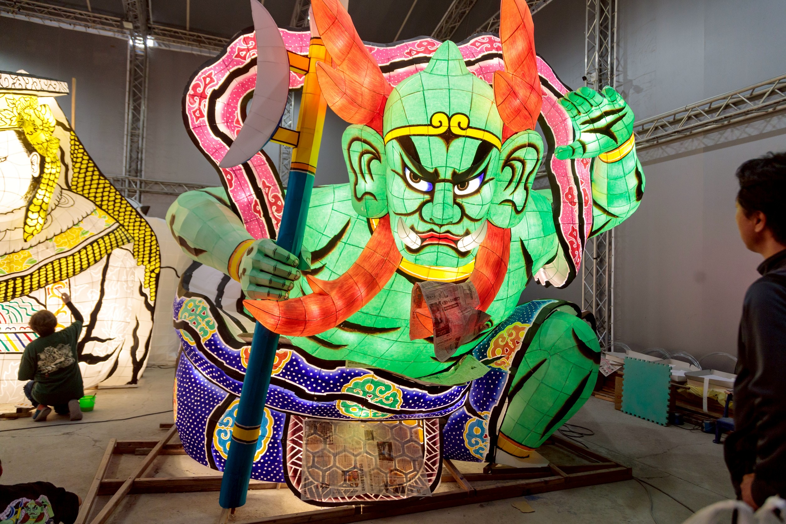 文觀局說,睡魔源自日本東北重要祭典—青森睡魔祭,以立體巨型武者與神話人物造型聞名,融合繪畫藝術、紙紮技法、骨架結構與燈光設計,是兼具力量與美感的傳統藝術形式,此次睡魔師跨海來台,完整呈現最道地製作工法,不僅提升燈會專業層次,也深化大眾對睡魔藝術文化精神與職人工藝價值的理解。