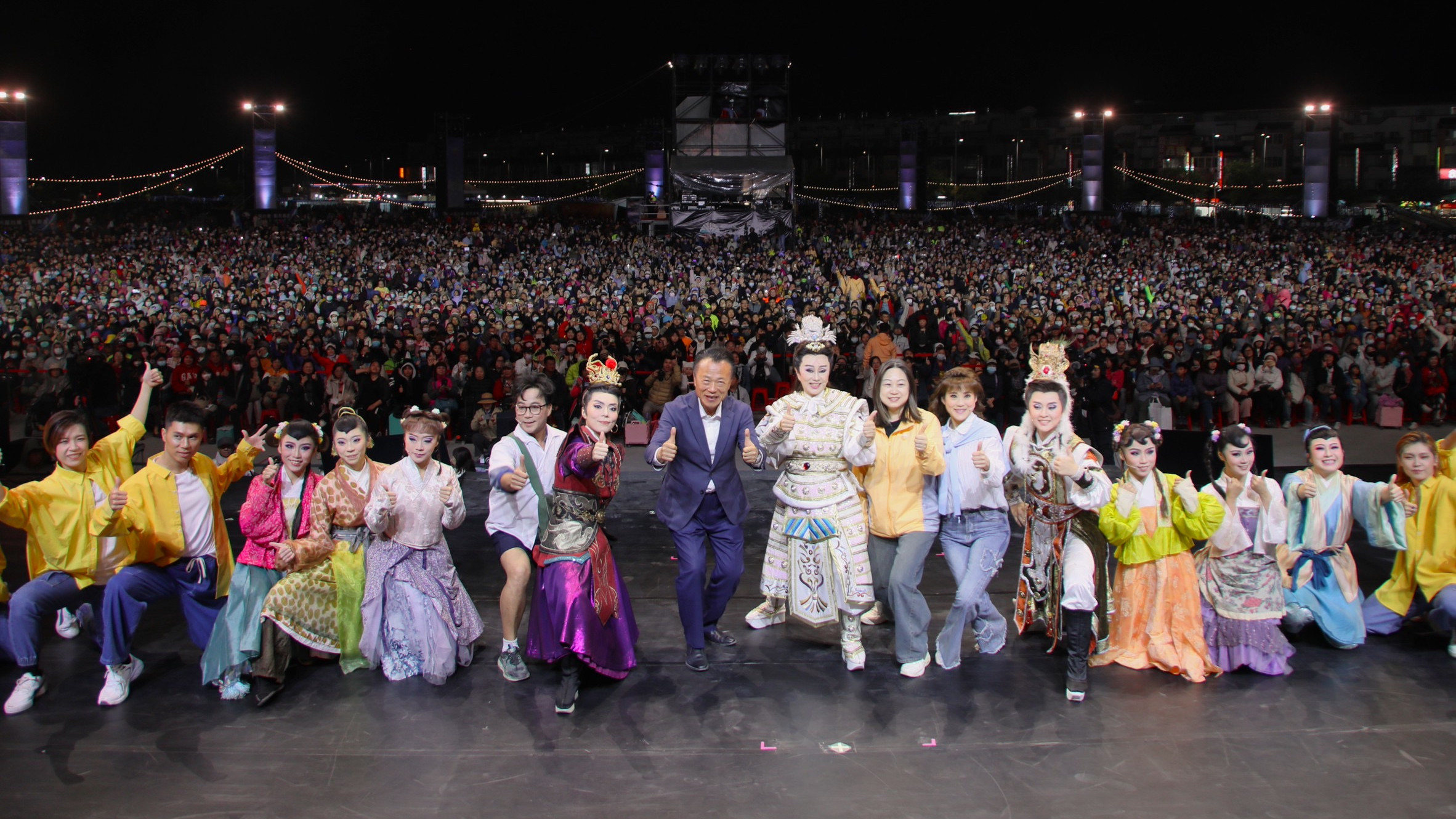 【特派員林昱宏嘉義縣報導】2026台灣燈會進入倒數階段,精彩節目持續登場。台灣歌仔戲代表團隊 明華園戲劇總團13日晚於燈會舞台演出經典劇碼《花燈六百年》,以傳統戲曲結合現代舞台科技,帶領觀眾穿越時空,呈現跨越六百年的花燈文化故事,吸引不少民眾駐足觀賞。