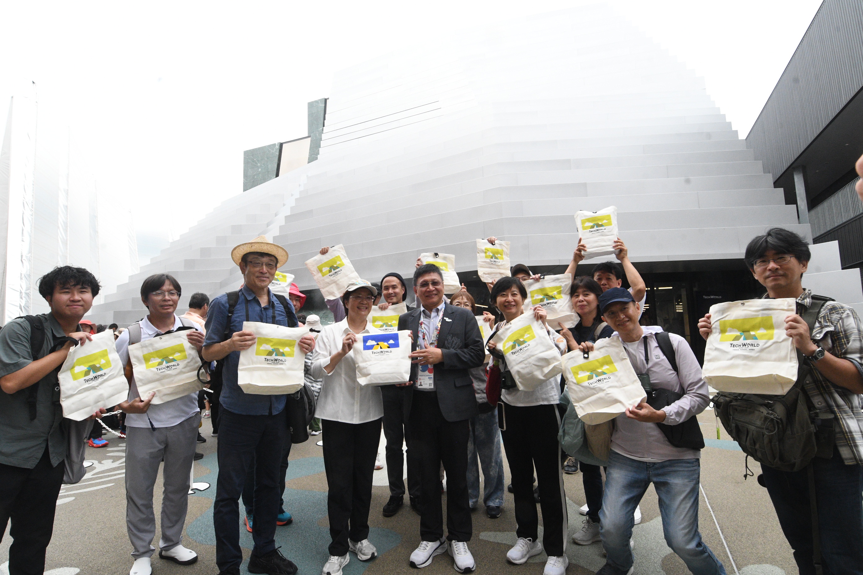 王縣長一行人同時參訪博覽會中,由臺灣企業設置的「TECH WORLD」的臺灣館,親自接待的臺灣館邱揮立館長表示,非常歡迎王縣長等臺日藝術家蒞臨臺灣館參觀,創造難得的交流機會,臺灣館在萬博會的表現相當亮眼,須排隊很久才能入場,而且根據日本X平台的聲量統計,臺灣館名列第五,顯示日本民眾對於臺灣館有非常高的關注度。