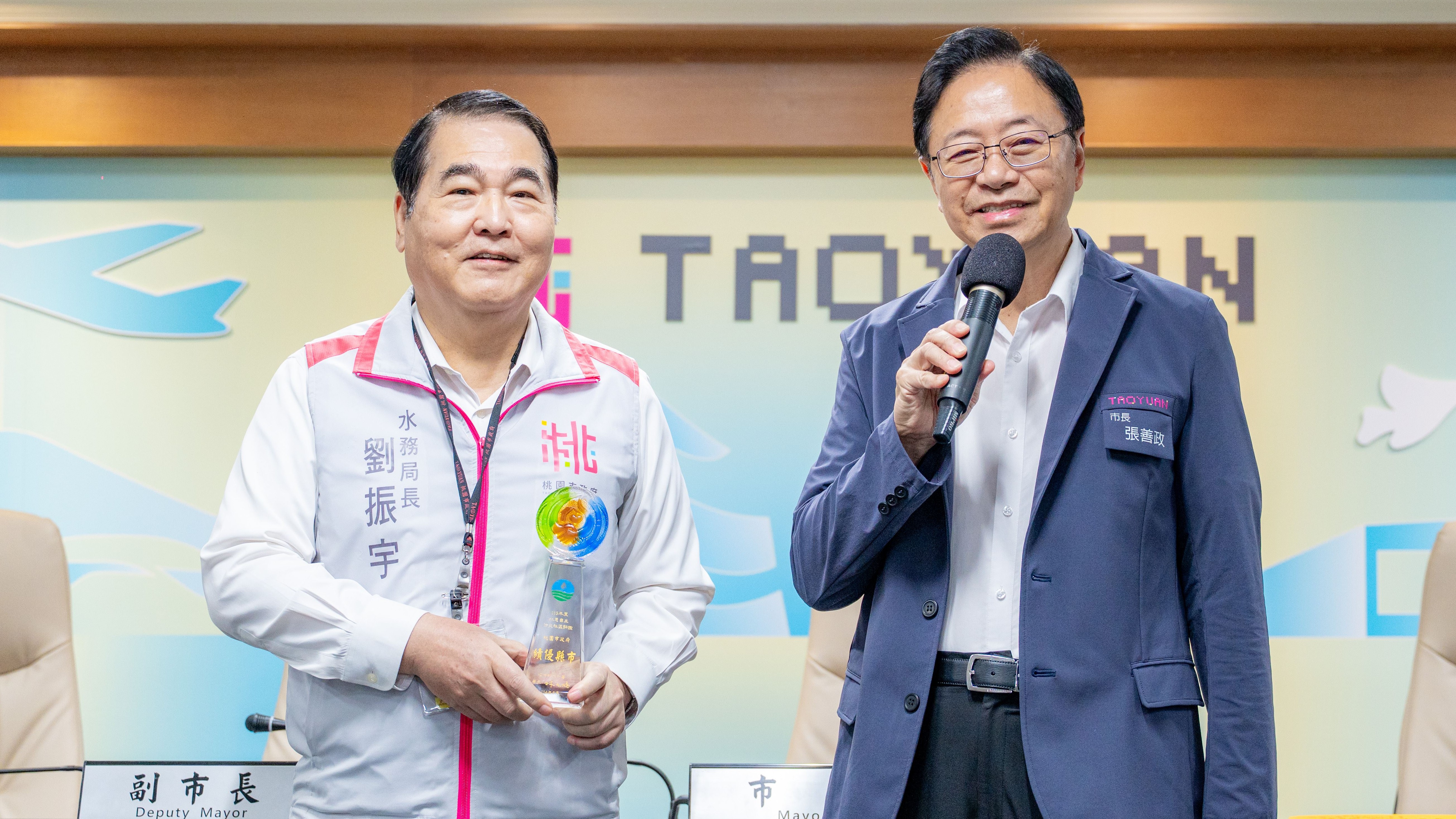 (記者張佳萱 桃園報導)桃園市長張善政(2)日上午主持市政會議,接受水務局呈獻榮獲經濟部水利署「113年度水患自主防災社區評鑑績優縣市」殊榮。張市長表示,桃園已連續8年獲評為水患自主防災社區績優縣市,不僅展現市府與各社區齊心防災的成果,更凸顯防汛、防災為市府施政重點。面對氣候日益異常,極端高溫與突發性暴雨已逐漸成為常態,張市長期許水務局除了在防災第一線繼續做好與基層的合作外,也呼籲與防汛、防災相關的局處更需超前部署、強化社區韌性,守護桃園市民生命與財產安全。