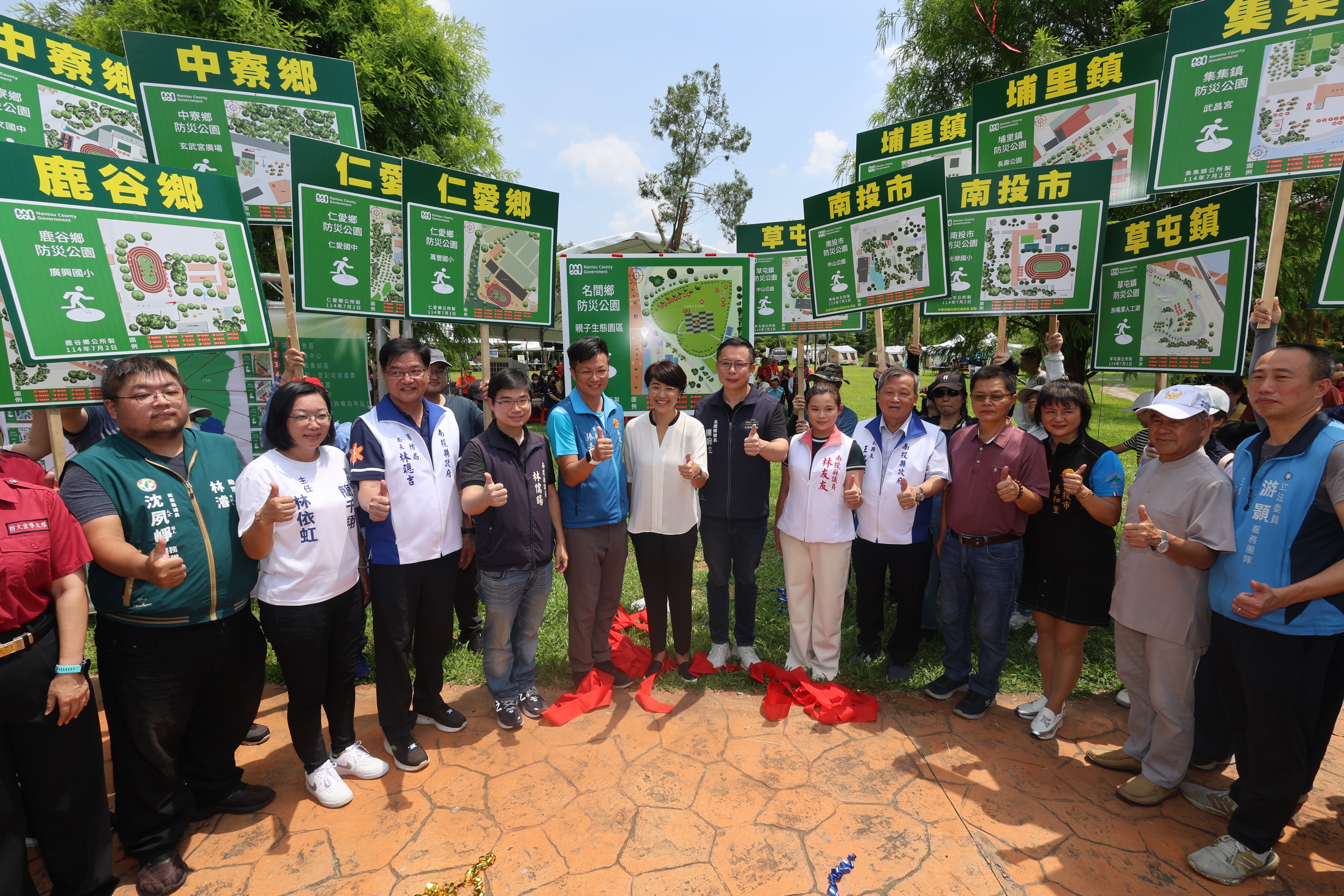 (記者廖廣學南投報導)南投縣每一鄉鎮市普設2座防災公園強化災害應變量能,2日在名間親子生態園區防災公園舉辦全縣26座防災公園揭牌成立典禮,同時擴大辦理模擬震災應變避難收容安置演練,過程逼真極具示範與實用性,縣長許淑華親自驗收後特別感謝所有參與演訓的各相關單位防災人員及慈濟紅十字會等志工的辛苦,包括許縣長、副縣長王瑞德、縣議員林儒暘、林友友、立委游顥辦公室主任蔡政軒、名間鄉長陳翰立、南投市長張嘉哲及眾多社區民眾參加。