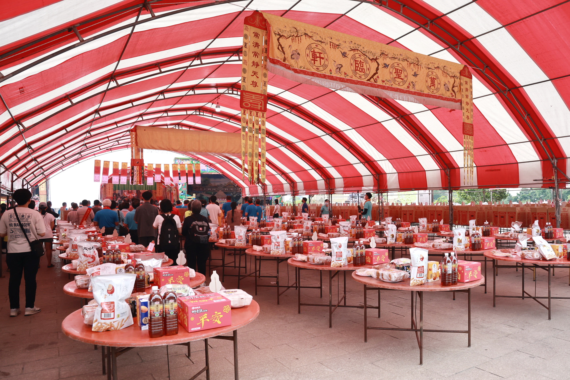 陳主委則表示,今年受天宮中元普度共募集了3,853組葷素桌供品、1千多份飯擔,有許多都是外縣市的信眾捐贈,廟方也準備了1萬2千公斤的白米和21隻大豬公,陳主委強調其實普度就是布施,晚間八點半進行送孤儀式後,將由社福機構現場領取供品,發送到真正有需要幫助的弱勢家庭或中、低收入戶。