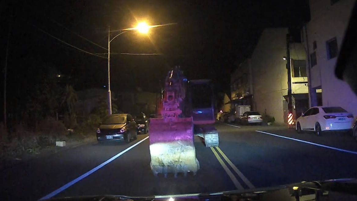 (特派員廖廣學 南投報導) 竹山警察分局日前凌晨5時許獲報,有一龐然大物在街頭發出巨大聲響擾人清夢,員警到場一看竟是一部挖土機在道路上行駛。員警立即示意駕駛停車受檢,惟駕駛拒絕受檢,竟舉起鏟斗準備砸向巡邏車,且無視員警攔查往前衝撞。員警見狀立即倒車,避免遭受攻擊,同時試圖控制駕駛行動。