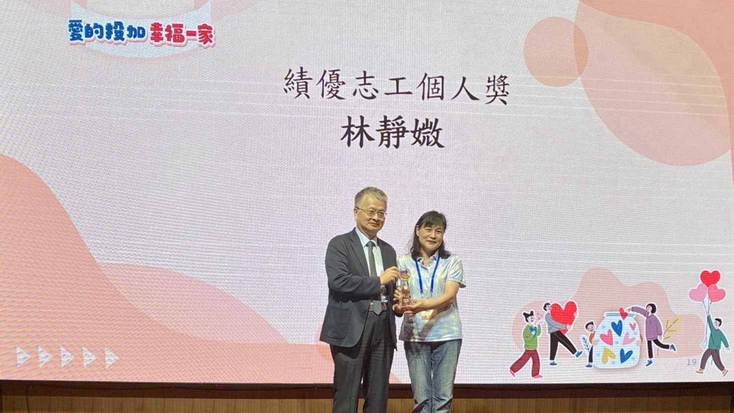 林靜媺女士在領獎時表示,感謝家庭教育中心的肯定,讓她有機會以志工身份投入服務。自加入諮詢志工行列以來,她持續精進專業,先後取得碩士學位、樂齡規劃師證書、社工與家庭教育專業資格。身為同時具備護理、社工與教育背景的社區總幹事,她深知家庭功能健全對社區發展的重要性。過去五年,她積極推動親子溝通、性別平等、樂齡教育等議題,設計跨世代創作與情緒教育活動,強化家庭凝聚力與教育知能。