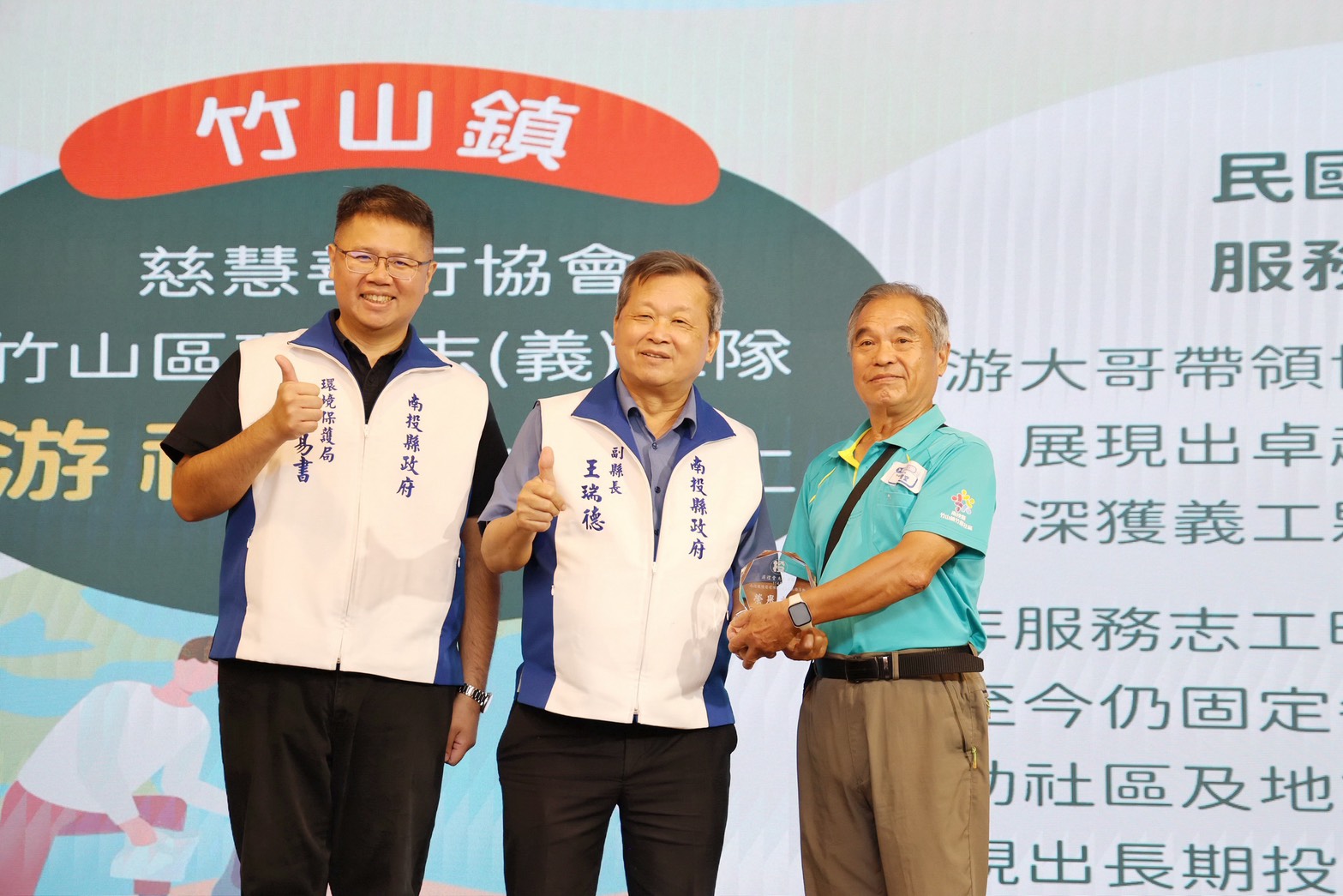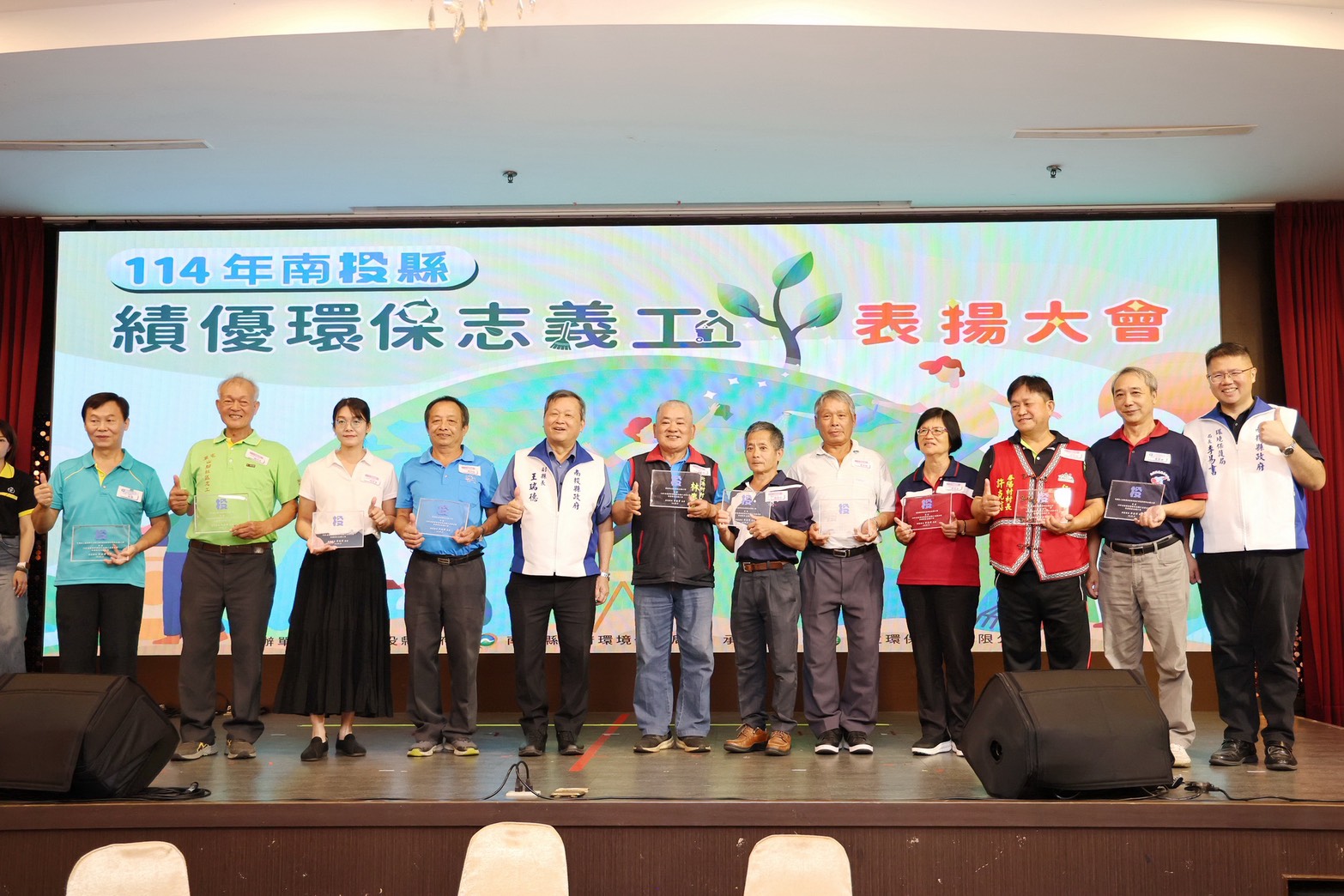(特派員廖廣學 南投報導)為感謝環保志(義)工長期在環境保護工作上的無私奉獻與卓越貢獻,南投縣政府13日在南島婚宴會館舉辦「114年南投縣績優環保志(義)工表揚大會」,由副縣長王瑞德出席頒獎表揚543位績優環保志(義)工及10支特優志工隊,場面隆重溫馨。