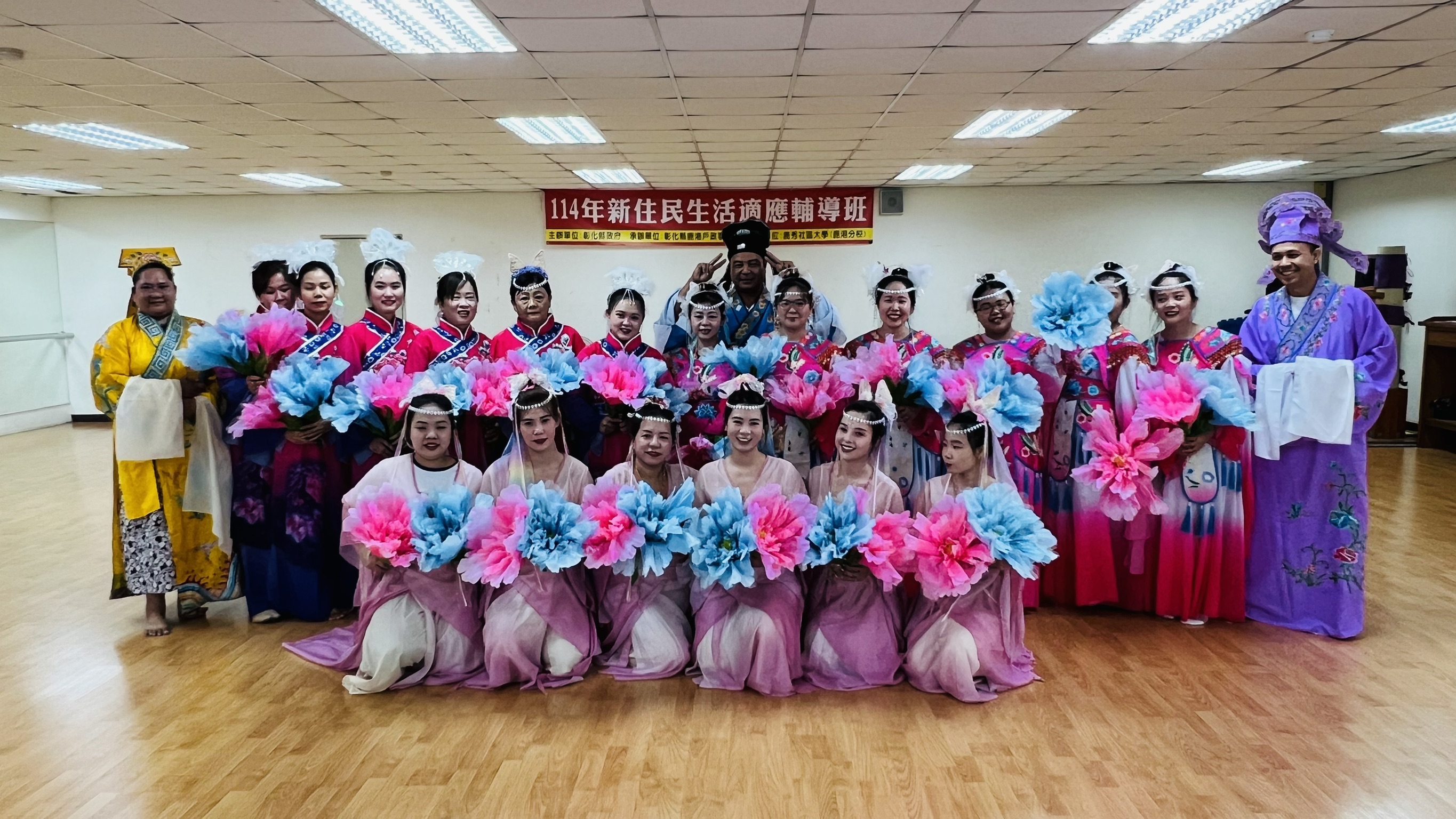 為引導新住民認識在地文化,特別聘請戲劇指導鐘麗珠老師,教導學員學習傳統歌仔戲角色、唱腔、身段等,編寫以「鹿港古早時代榮景」為主題的歌仔戲劇本,帶領22位來自越南、印尼及菲律賓的學員發表成果展演,感動在場觀眾及眷屬。此外,學員們更運用研習課程中學習的影片剪輯技巧,將展演的過程製作成影片,讓遠在他鄉的家人也能一同見證新住民的學習歷程與鹿港文化交流的成果,賦予課程更深遠的意義。