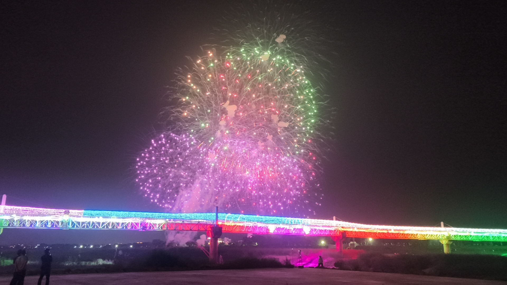試放焰火,未演先轟動,沿著貓羅溪堤防,許多民眾白天提早卡位,架設相機腳架,準備取景。晚間6點至10點實施交通管制,範圍涵蓋華陽路、順溪北路、東閔路、營中路、平山坑排水路、祖祠路、育樂路、芳美路及信義街等10個路段,其中綠美橋因限重,自晚間7點至試放結束亦同步管制。