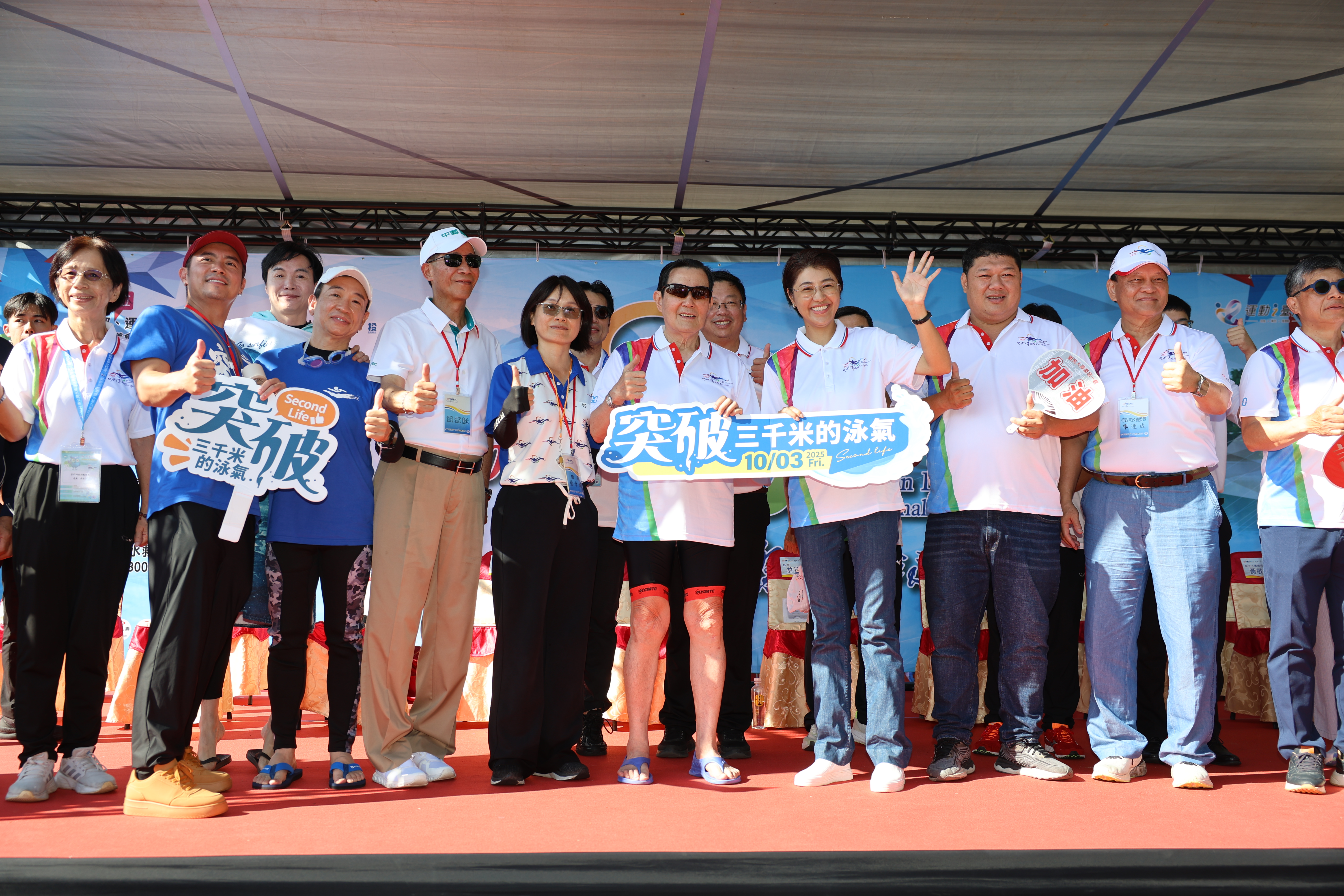 許縣長表示,日月潭國際萬人泳渡是台灣歷史最悠久、規模最大的開放水域游泳活動,2020年七位視障朋友參加萬人泳渡,真實故事搬上大螢幕,10月3日電影《突破:三千米的泳氣》以挑戰日月潭為題材,愛好運動的朋友,透過這部勵志電影,可以看到自已的身影。許縣長感謝埔里四季早泳會,志工及醫護人員大力協助,讓泳渡活動能順利進行。