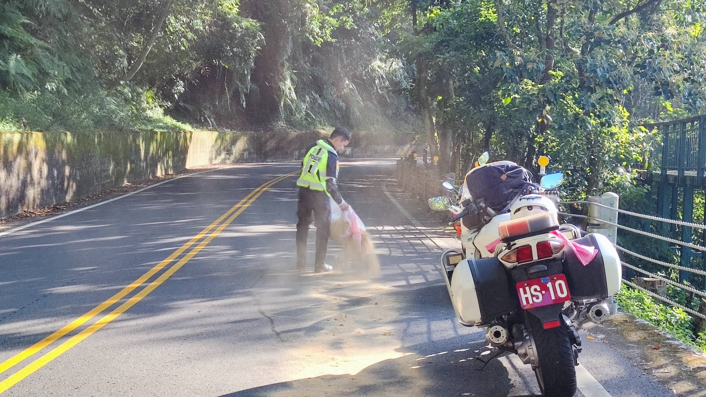 本(114)年9月28日當日上午,南投縣政府警察局交通警察隊六名騎乘大型重機同仁於日月潭環湖公路執行交通疏導勤務時,行經臺21甲線2.3公里處大彎道時,發現兩名民眾正試圖將一輛普通重機自護欄處拖出,同仁立即停車協助,發現其中一名民眾衣褲多處破損並有滲血傷口,疑似因車禍受傷。經了解,該名民眾為在日月潭民宿打工之青少年,在過彎行經該處時,因路面上有長達30公尺大面積不明油漬,導致機車失控打滑撞擊護欄,所幸因正確配戴安全帽,大幅降低了受傷情形。