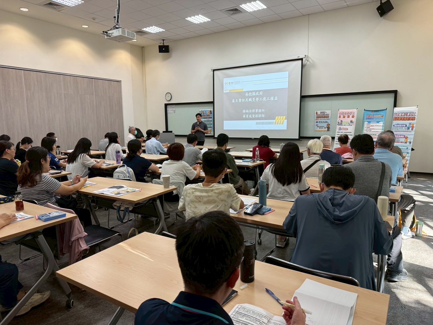 縣府社會及勞動局依據111年5月1日施行之「勞工職業災害保險及保護法」(以下簡稱災保法) 施行,辦理「協助職業災害勞工重返職場補助辦法作業計畫」。114年下半年度預計辦理3場次,以事業單位負責人、主管、人事相關業務人員及勞工為對象,邀請勝綸法律事務所執業律師,以職災勞工復工權益、雇主責任及實務案例為主軸,期能增進與會人員對於各項權益與義務的瞭解。第一場次114年10月3日(星期五) 及第二場次114年10月9日(星期四)於經濟部中台灣創新園區辦理,第三場次114年10月21日 (星期二)於埔里冠月精品旅館辦理,目前三場次報名皆已額滿,預計參與人數180人。