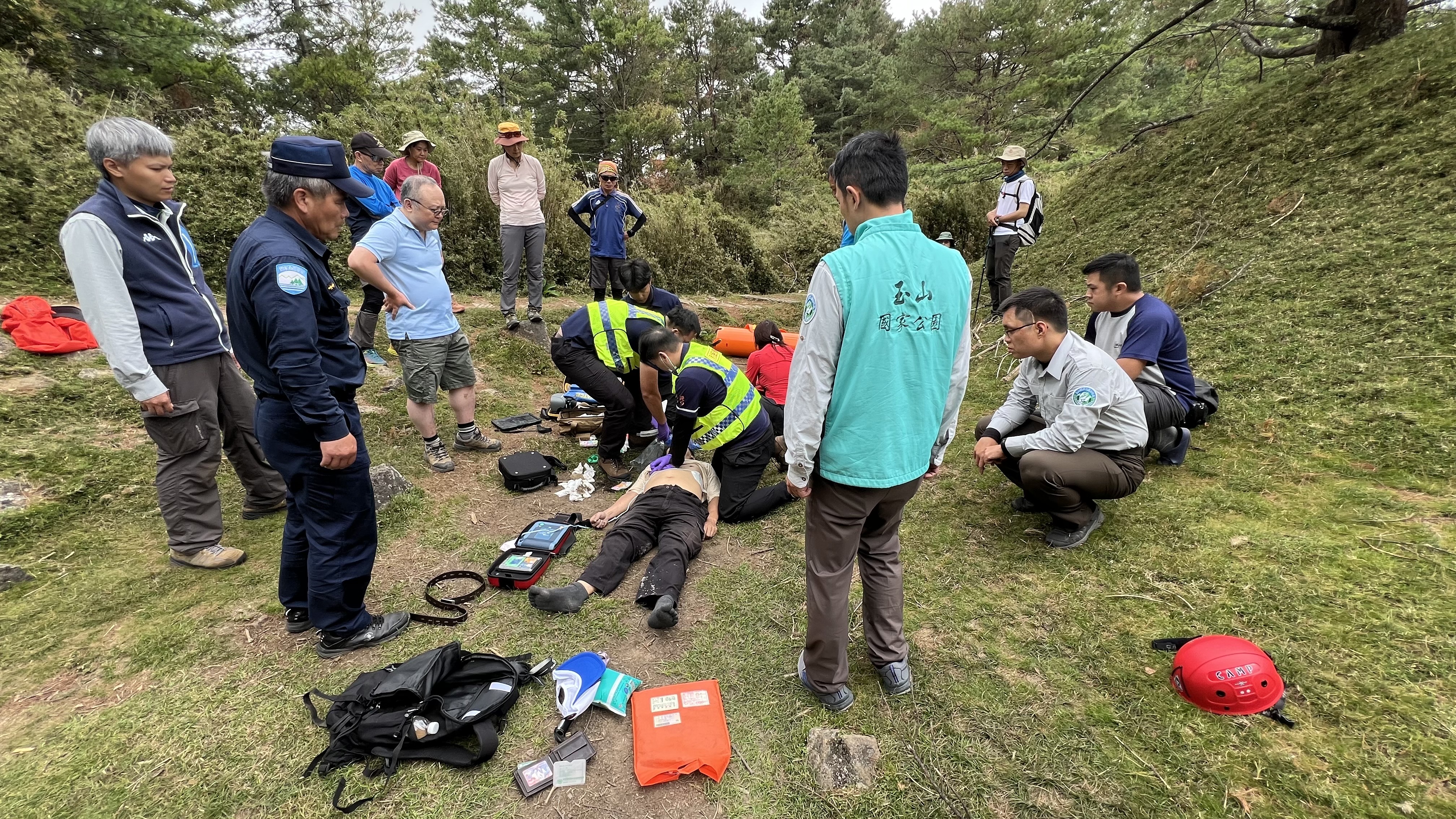 南投縣政府消防局第三大隊接獲通報後,隨即啟動山域救援機制,玉山分隊警義消共10名及救護車和勤務車出勤,同時玉山國家公園管理處塔塔加管理站技正、技士和助理保育巡查員3人,以及保七總隊第六大隊玉山分隊塔塔加小隊2名警員就近支援,共計地面部隊15人前往馳援。