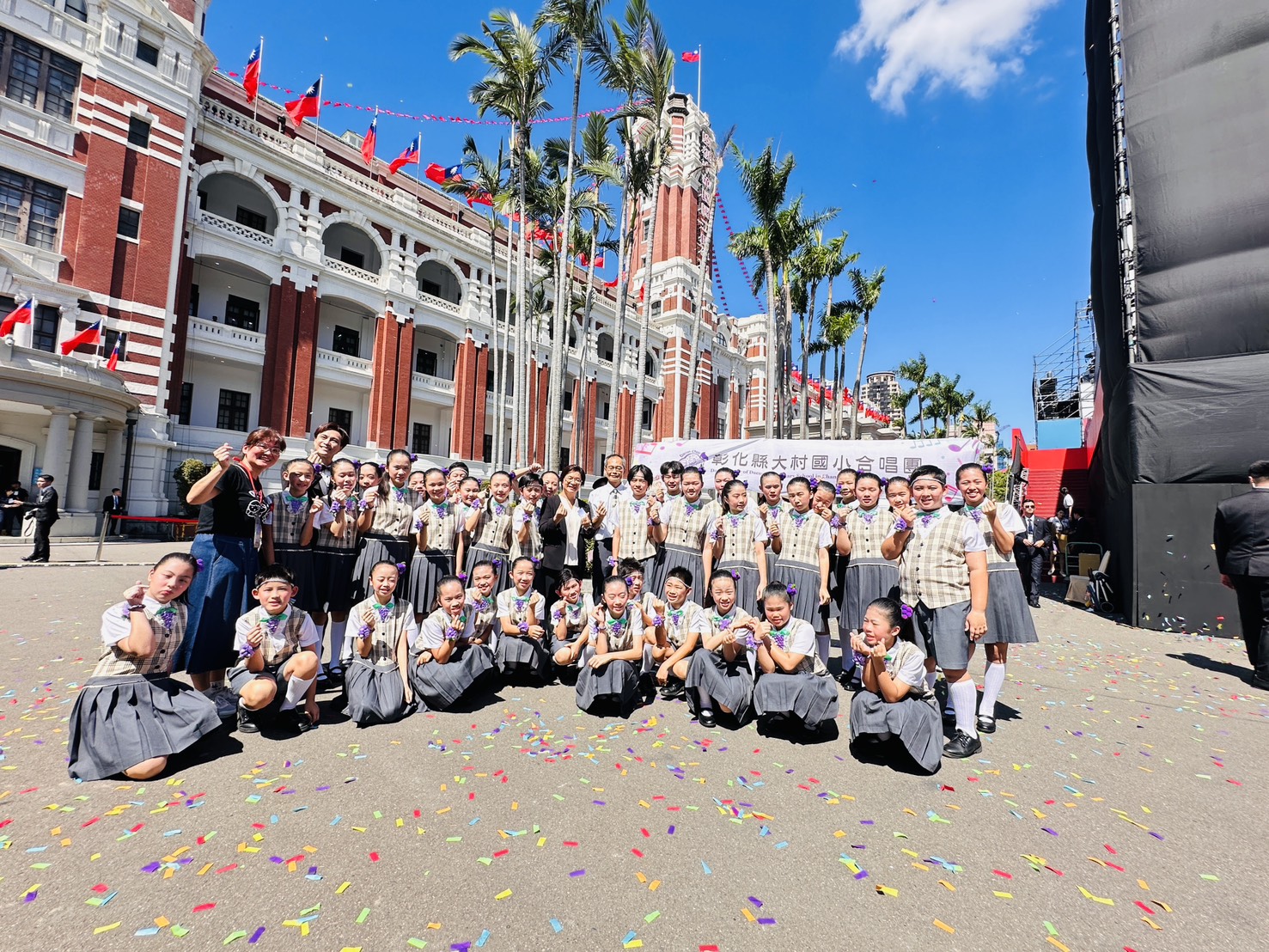(記者邱暐茹 彰化報導) 彰化縣大村國小合唱團受邀擔任10日10日上午10:10在總統府舉辦的中華民國國慶大會領唱國歌,與優秀新住民代表及社會團體公益貢獻金質獎代表共同演唱,為國家慶典獻上最真摯的祝福。彰化縣長王惠美也前往參與盛事,王縣長讚許大村國小不僅為彰化之光,更是台灣之光,天籟美聲響徹總統府前,同時也感謝校長、老師的指導,讓小朋友能夠將這份美聲帶上國家最高的舞台,向全國人民展現他們的努力與榮耀。