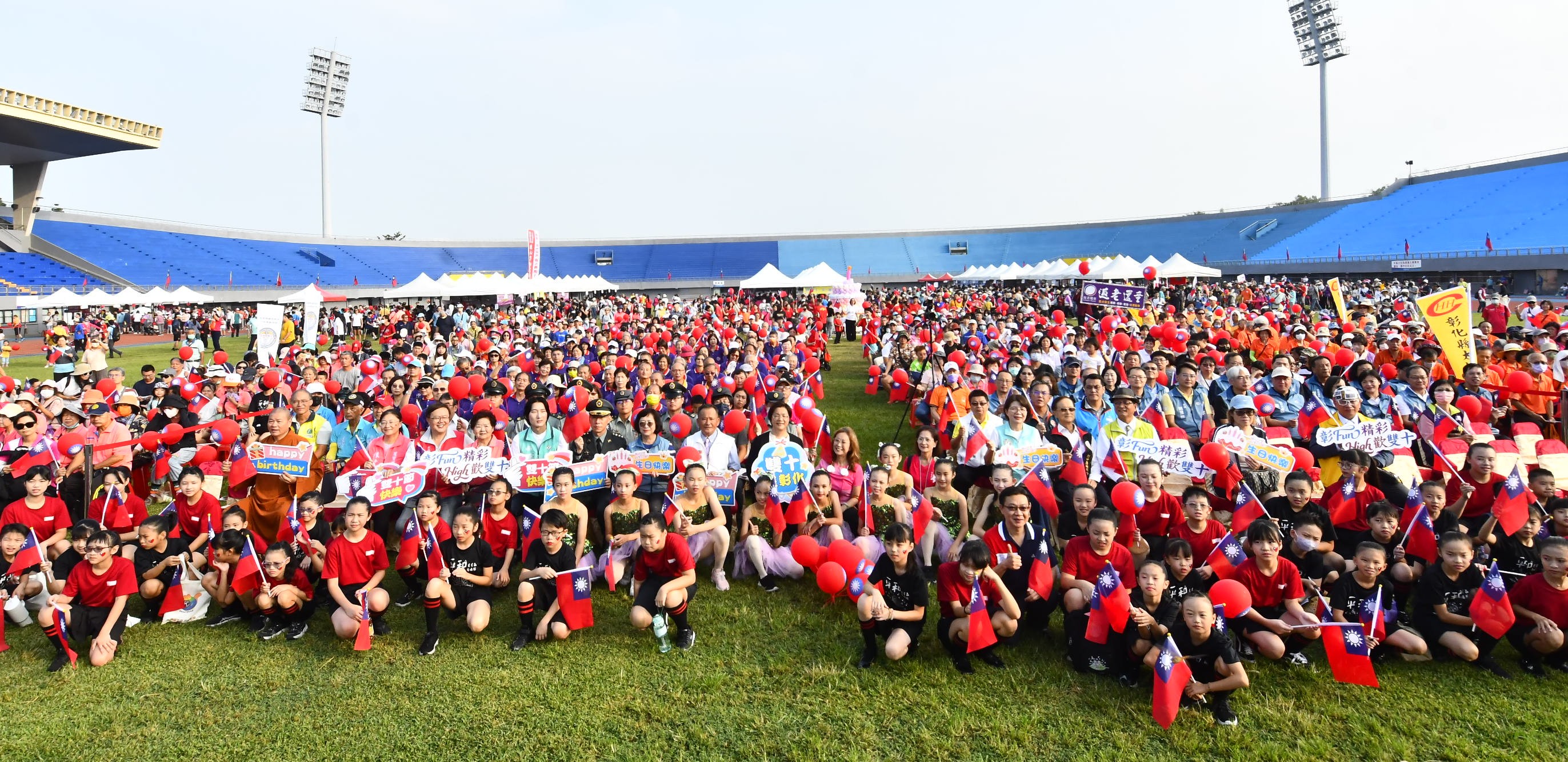 (記者邱暐茹 彰化報導) 彰Fun精彩・High歡雙十,歡慶中華民國114歲生日,彰化縣政府10月10日上午7時於彰化縣立體育場盛大舉辦「彰Fun精彩・High歡雙十」健行活動暨公益園遊會。縣長王惠美與會參加升旗典禮,現場吸引超過四千人一同參與,展現大家對國慶的熱情與期待,一起為彰化的未來加油打氣!王縣長表示,祝福中華民國生日快樂!感謝社會處及救國團用心規劃一系列活動,活動包括有公益市集、親子體驗活動區,還有闖關集點以及健行活動。9月開放線上報名後,3千名額很快就額滿,現場總參與人數突破4千人,「2025台灣設計展」同時也於今天正式開展到10月26日,為期17天,邀請鄉親帶著親朋好友一起踏上「彰化行」的旅程。