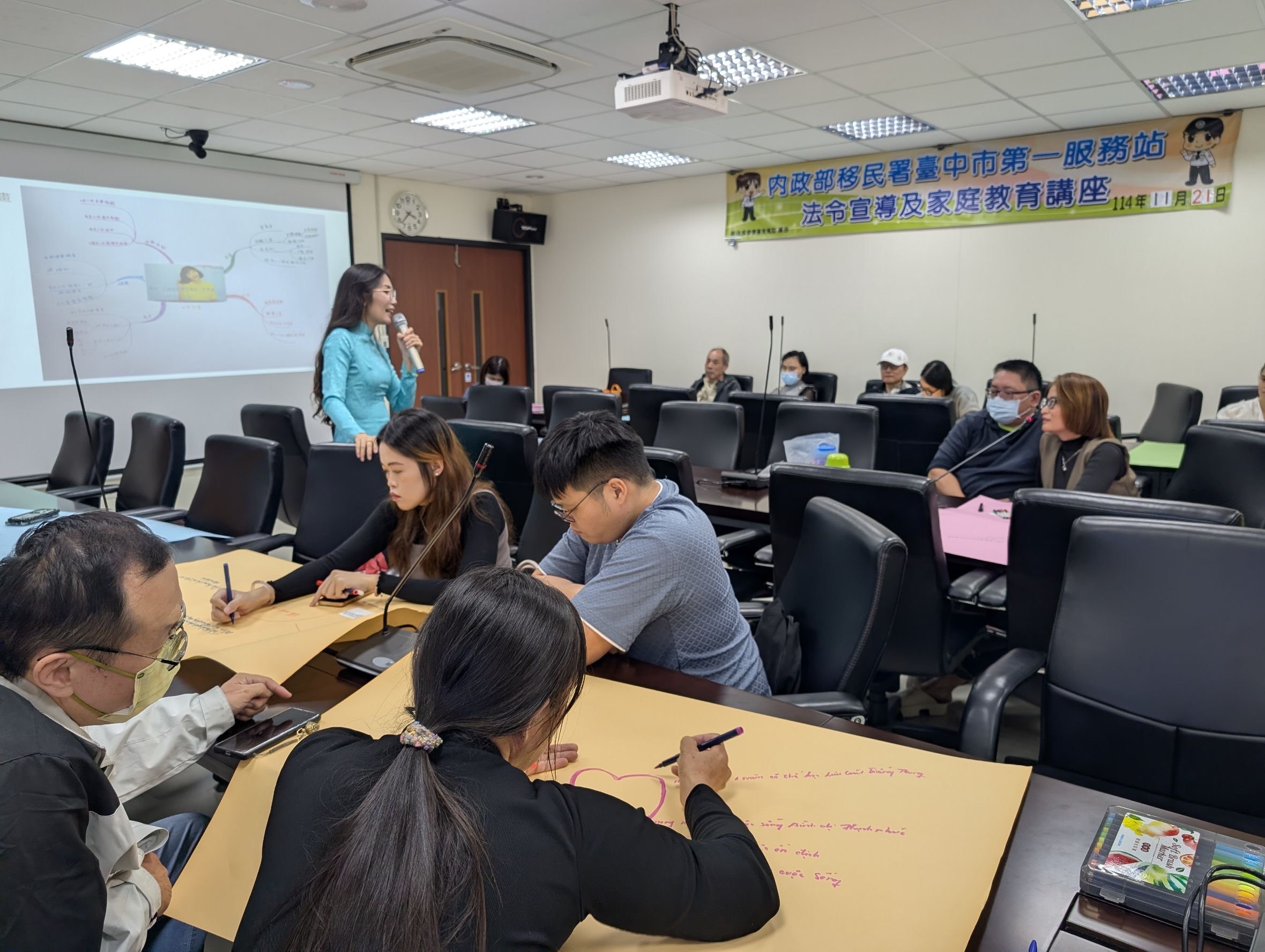 臺中市第一服務站主任王驥鼓勵新住民朋友用愛灌溉生活,打造屬於自己溫暖的家;內政部日前公告針對逾期停居留的無戶籍國民或外國人,推出「查獲前自行到案者,罰鍰減半」措施,希望符合資格者趕快勇敢出面到案,給自己可以早日返國的機會。