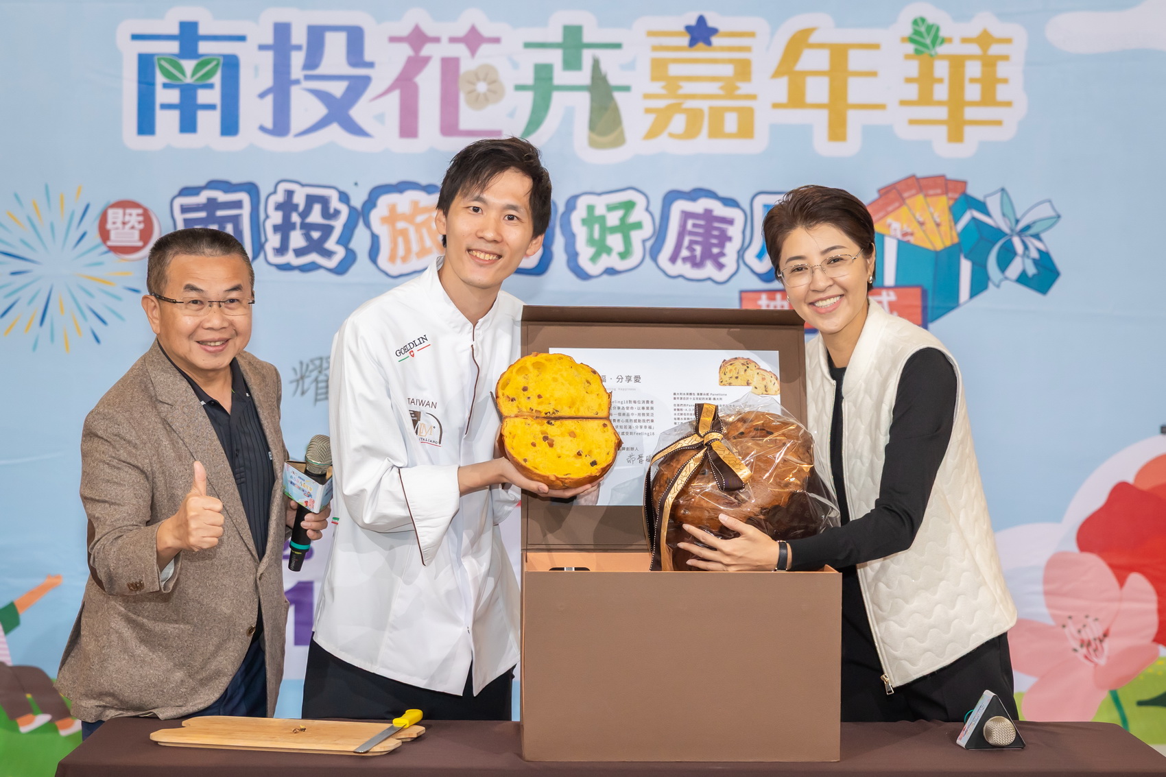 記者會中,各鄉鎮代表公布賞花資訊,宣傳大使高曼容也透過新拍的宣傳影片,歡迎全國民眾到南投旅遊。 Feeling18創辦人茆晉(日牂)也在活動中,帶來台灣高鐵商務艙指定點心—可可椪柑蛋糕及台灣隊上個月在世界盃聖誕麵包大賽奪得總冠軍的水果麵包潘那朵尼,象徵以南投土地孕育的素材站上世界舞台,提升南投國際能見度。許縣長肯定Feeling18長期投入地方,以高品質烘焙結合在地花果香氣,讓花卉嘉年華增添更多精緻亮點。