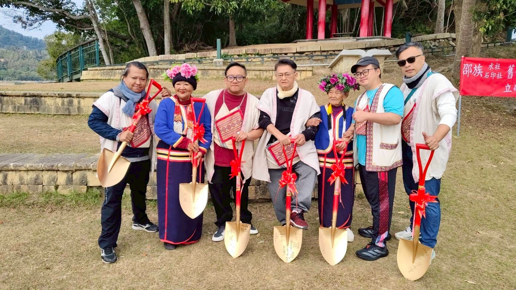 (特派員廖廣學 南投報導)為保存與彰顯邵族傳統文化與歷史記憶,南投縣政府推動「邵族水社石印社舊部落遺址暨袁姓、石姓頭目祭祀場立碑計畫」,16日在南投縣魚池鄉中興路育樂亭(老人會館公廁旁步道)舉行立碑祈福動土儀式,邀集族人長老、部落代表及地方民意代表共同參與,場面莊嚴隆重 。