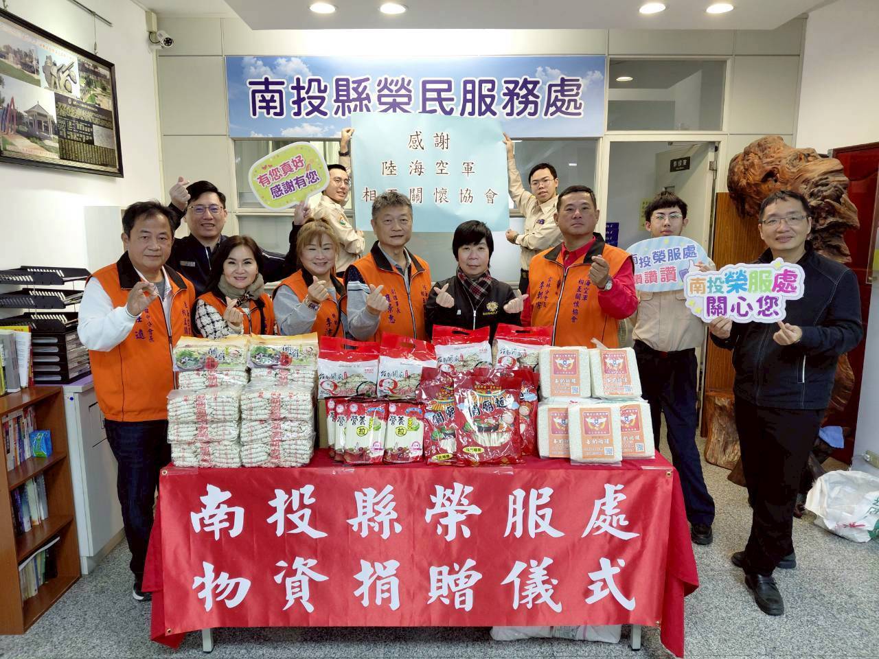 (特派員陳錦玲 南投報導) 社團法人陸海空軍相互關懷協會崔景惠副理事長與李朝家雲林分會長於本(16)日蒞臨南投縣榮民服務處,捐贈愛心麵食一批,關懷南投縣清寒榮民眷家庭,以具體行動傳遞冬日暖意。當日由處長王怡文代表接受,並回贈感謝狀表達謝忱,感佩協會長期致力公益、主動關懷榮民眷之善心義舉。