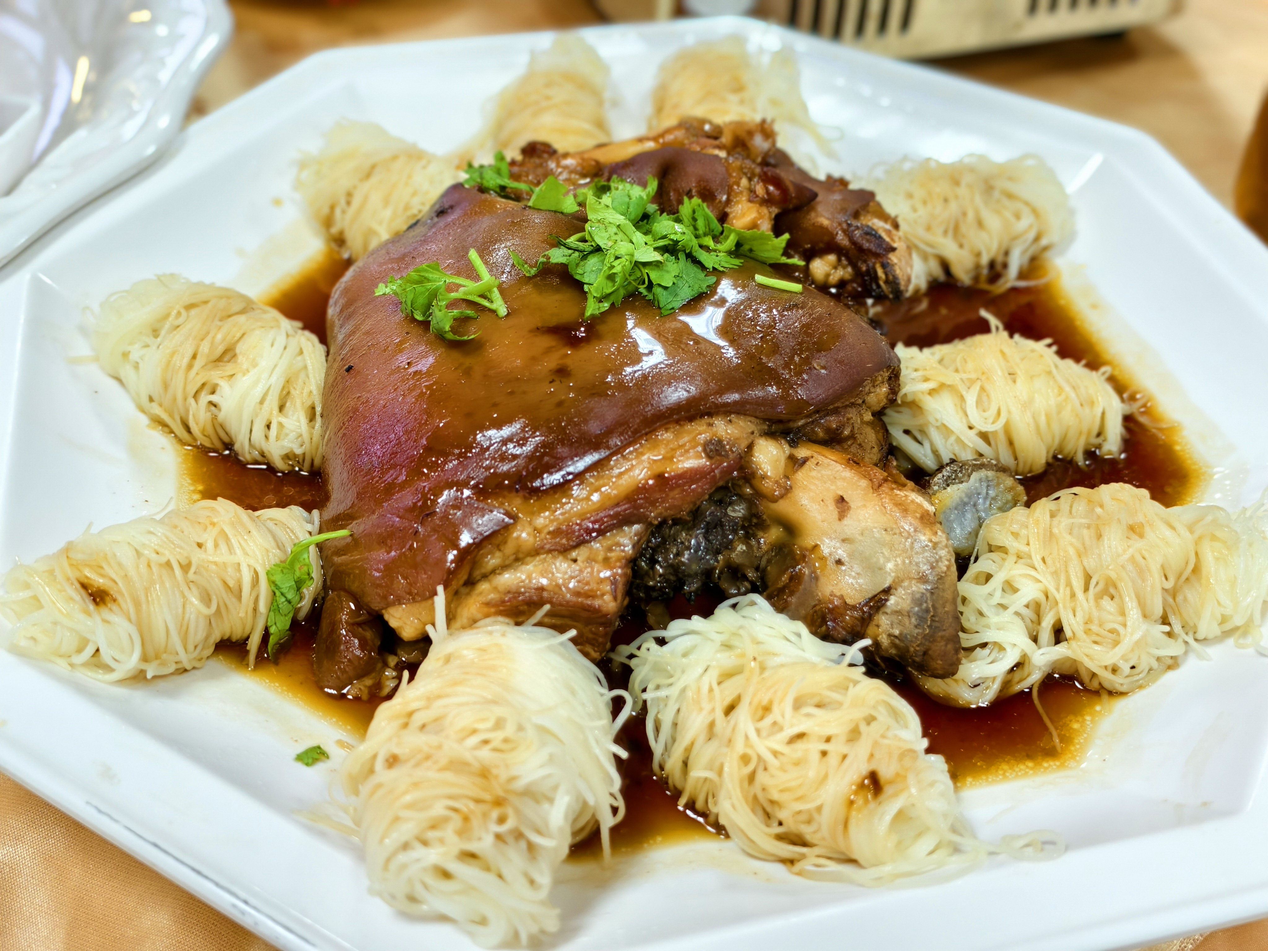 參與試菜的總鋪師王淳鐃表示,「心想事成樂長青」這道料理融合豬腳與麵線的祝壽寓意,豬腳寓意勇健安康,麵線則代表長壽吉祥,期許賓客心想事成、福壽綿延;喜愛吃辦桌的民眾徐小姐,對以牛奶麵包搭配豬五花的創意改良刈包「共享榮華望五花」讚不絕口;現場民眾王小姐則推薦中西合併的「和氣生財豬福您」,將醃漬紅蘿蔔與生菜、酥炸豬排完美結合,展現台式與西式融合的美味層次,口感清爽不膩。