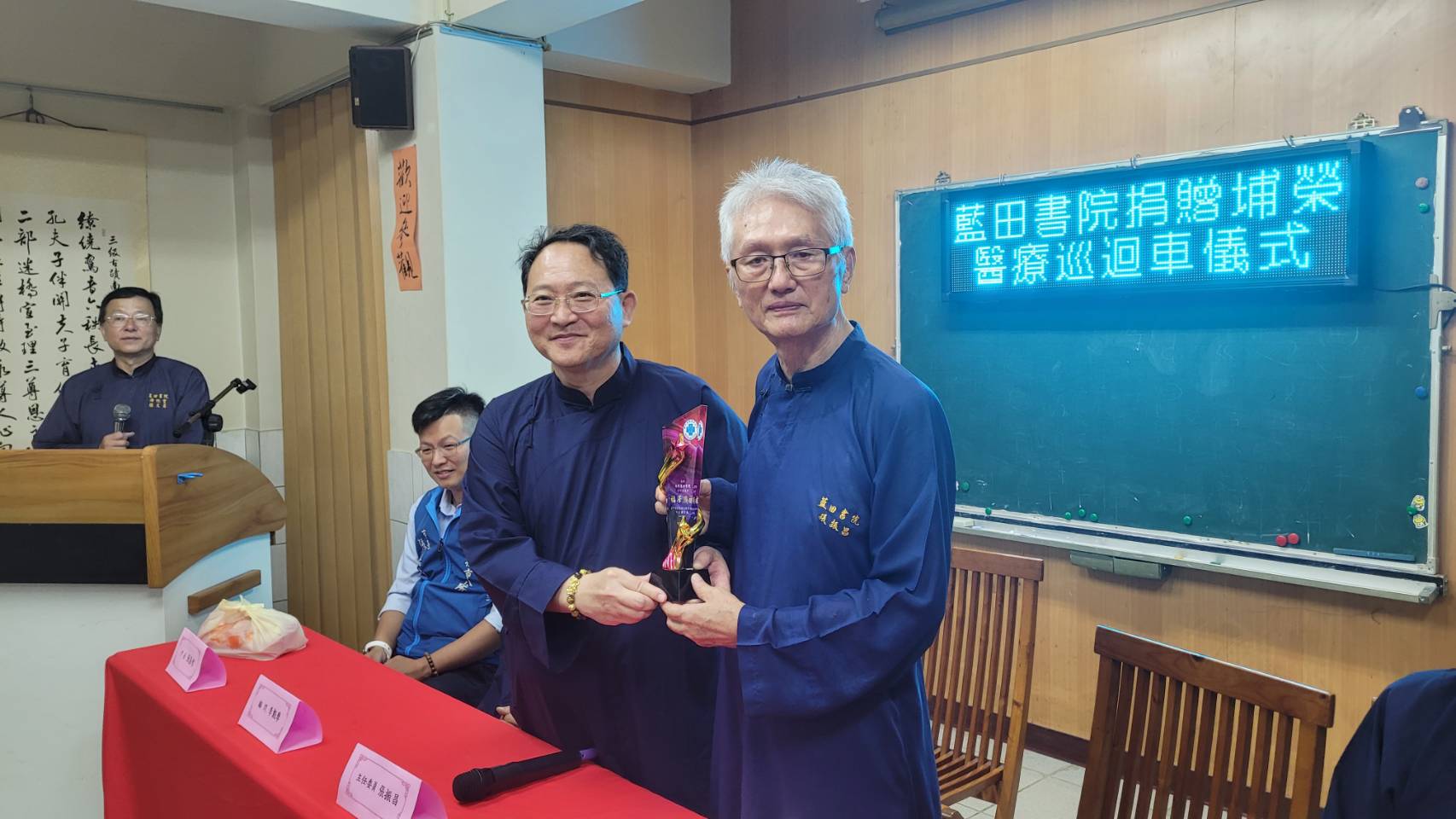 藍田書院管委會主委張振昌表示,本院堂積極推展各項宗教、文化與慈善救濟弱勢活動並積極響應地方社區各項公益事務。此次在本堂諸尊恩師庇佑及十方信眾的護持下,此次捐贈醫療巡迴車為四輪傳動車輛,將大大提升醫護的訪視效能,更便捷地抵達病患家中,提供必要的醫療服務。