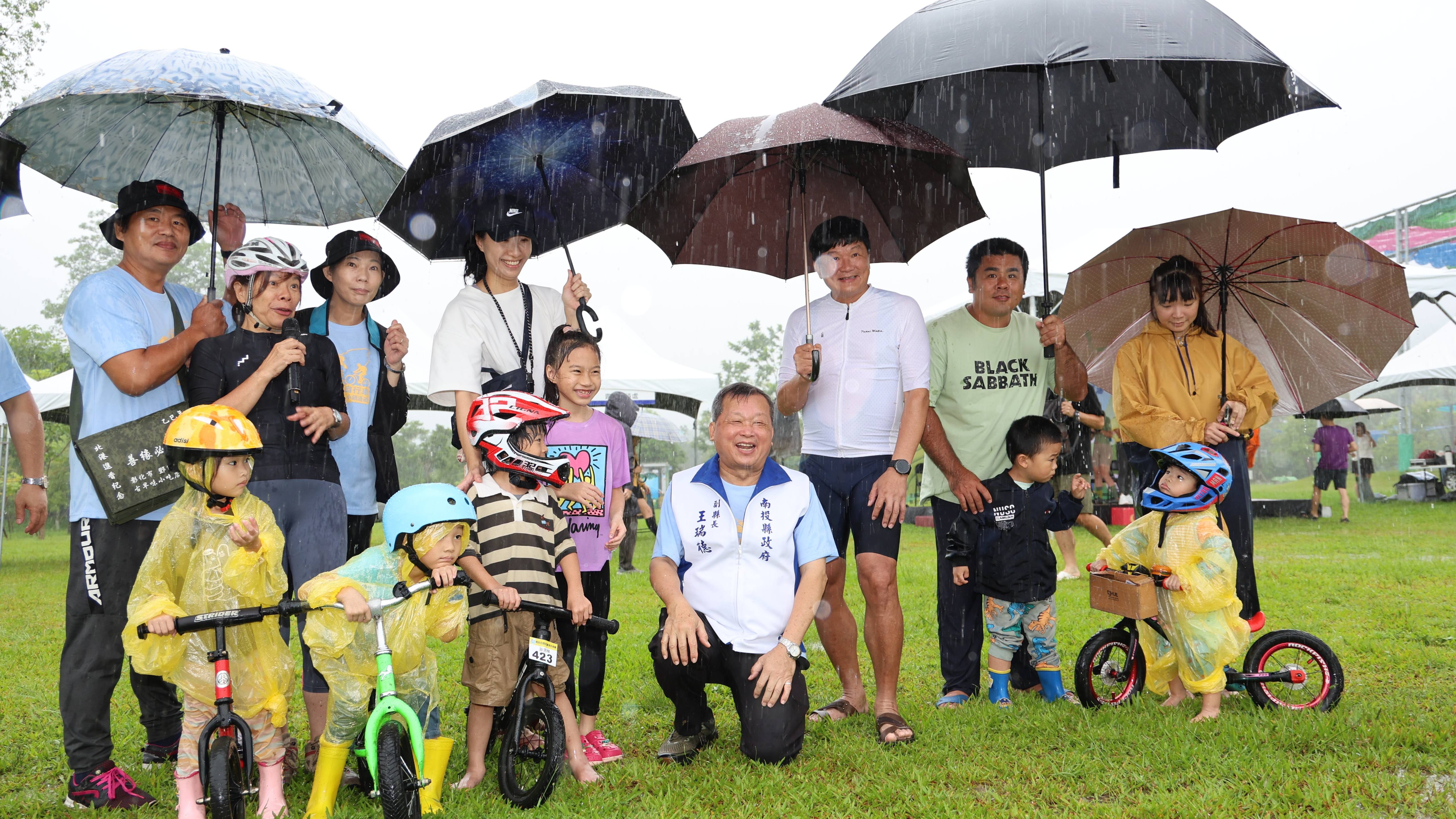 (特派員陳錦玲 南投報導)「2025南投旅遊百K自行車小鎮漫遊」系列活動之一的首屆「名間小鎮漫旅尋騎」及「名間兒童滑步車賽」,26日冒雨在名間親子生態園區歡樂登場,參與的大小朋友以熱情活力無畏挑戰風雨,展現絕佳的運動家精神,更領略南投名間茶鄉無上的雨中美景。