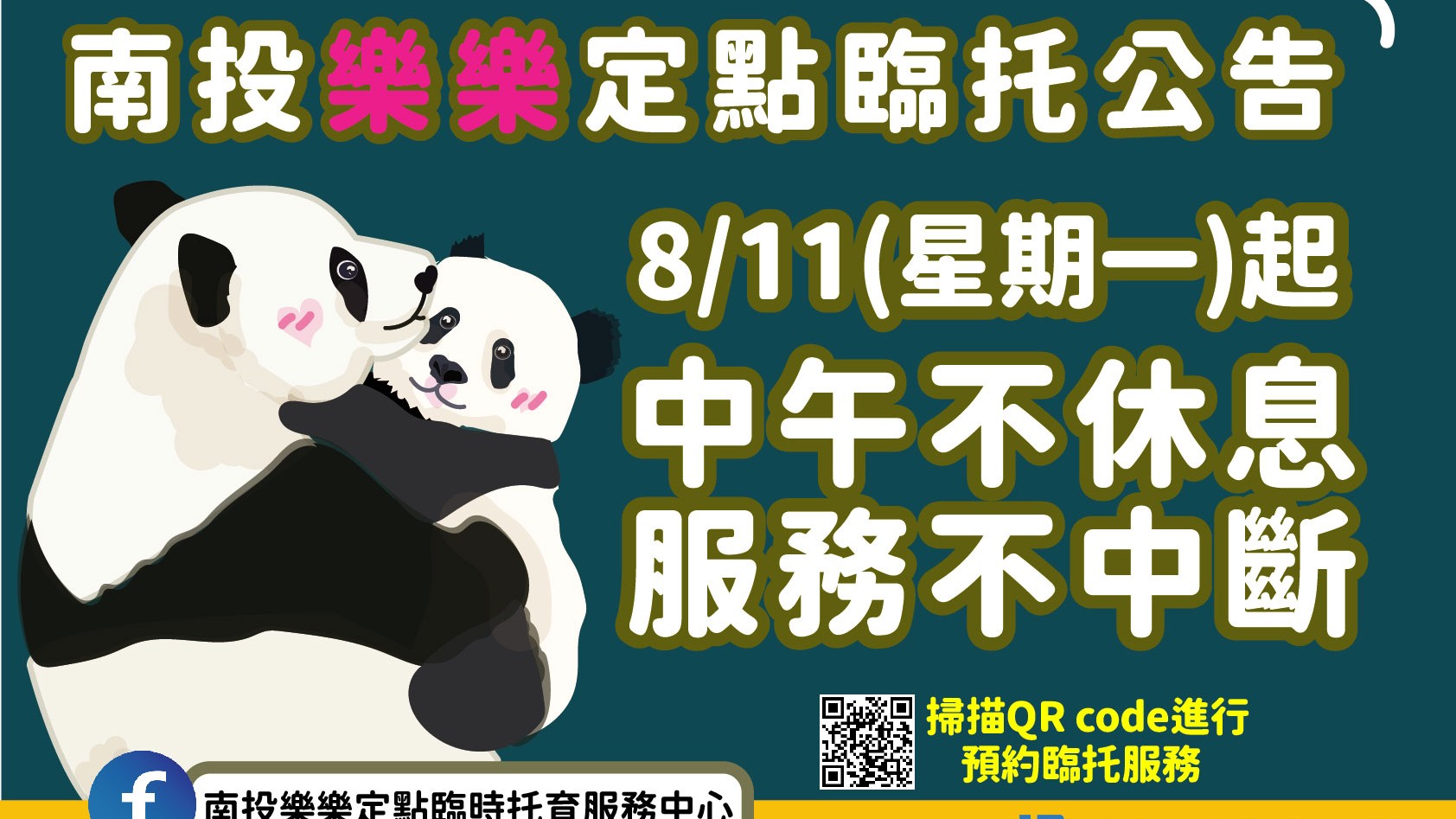 南投樂樂定點臨時托育服務中心8/11起中午不休息服務不中斷