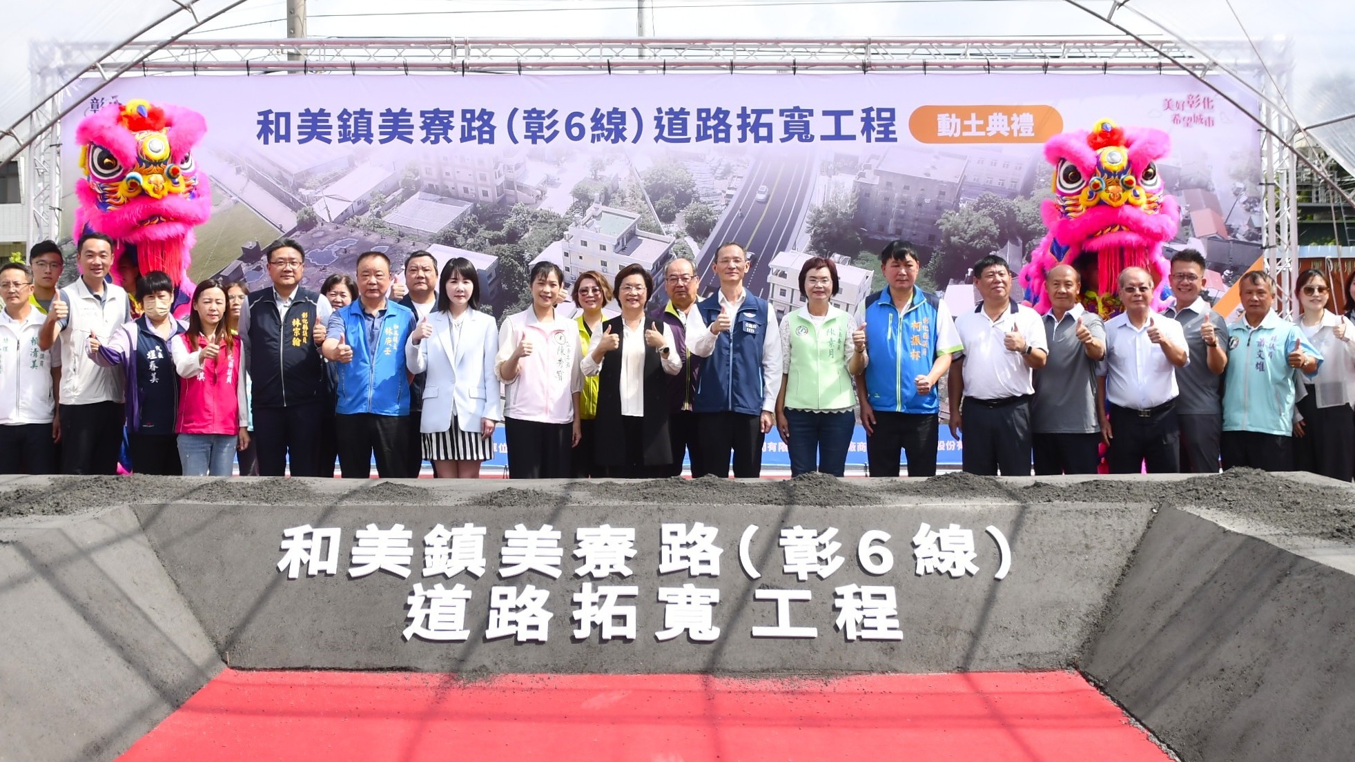 (記者邱暐茹 彰化報導)因應和美鎮快速發展所帶來的交通需求,今(11)日上午在和群國中斜對面空地舉行動土典禮,彰化縣長王惠美等人與會。王縣長表示,美寮路是和美彰化重要聯絡道路,10多年來,雖然都市計畫範圍內已拓寬到16公尺,但因部分非都市計畫路段仍有交通瓶頸僅有8公尺寬,導致常有壅塞情形險象環生,亟需改善,「美寮路(彰6線)道路拓寬工程」總經費約5億1,731萬元,感謝中央補助4億1,902萬1,000元,縣府自籌9,828萬9,000元,感謝議長謝典林及議員們對預算的支持,預計116年4月底前完工,這個案子縣府去年就已發包完成,但因土地問題一直遲遲無法施工,謝謝立委陳秀寳協請內政部協助,才能順利動土,打通交通瓶頸。