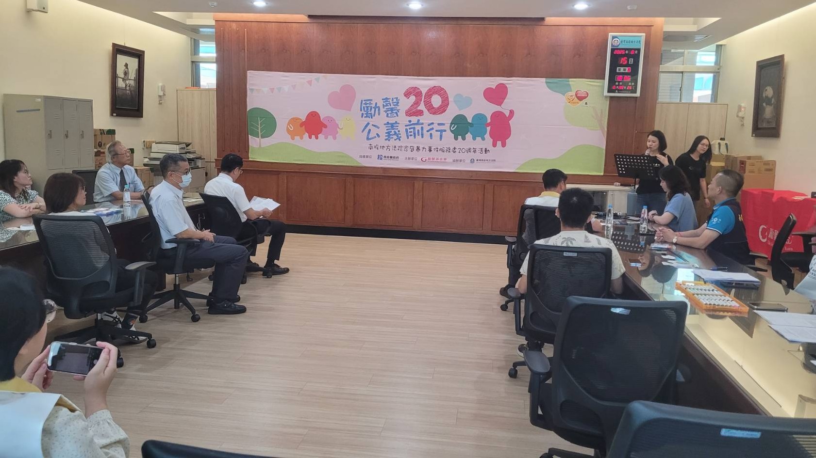 為感謝各界支持,並向社會大眾分享司法與社福合作的豐碩成果,即日起至8月29日,南投簡易庭一樓大廳設有「家暴事件服務處20周年靜態成果展」,內容包括服務數據、實務工作場景與協助流程,讓參與者深入理解從保護令聲請、法律協助到心理支持、陪同出庭的完整陪伴歷程。展覽不僅呈現社工實務工作,也見證受暴者在多方支持協助下逐步重拾自我、走出陰霾的歷程。