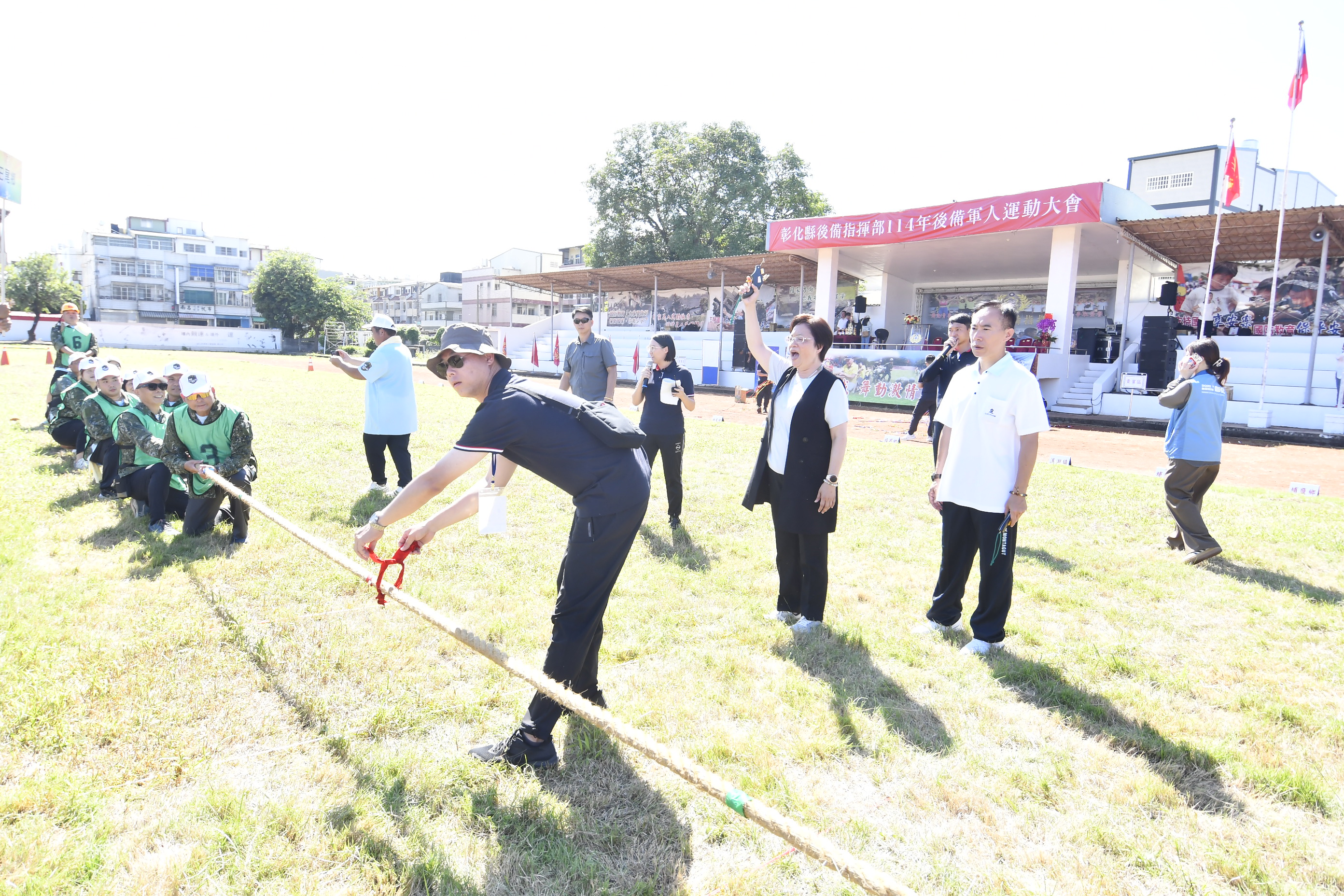 (記者邱暐茹 彰化報導)彰化縣後備指揮部於今(16)日上午在永靖高工舉辦「114年後備軍人運動大會」,由彰化縣後備指揮部指揮官梅上校主持,彰化縣長王惠美應邀到場加油勉勵。後備軍人是鞏固國防的中堅力量,藉由此次活動,不僅讓後備弟兄們活動筋骨、增進體能及冶鍊身心,也讓大家得以暫時放下日常的繁忙與壓力,藉此聯絡同袍情誼,進而凝聚國防向心力。比賽項目有狙擊之王、力拔山河、時代巨輪、同心協力、分秒入魂等,項目多元,激發參賽者高昂的士氣。